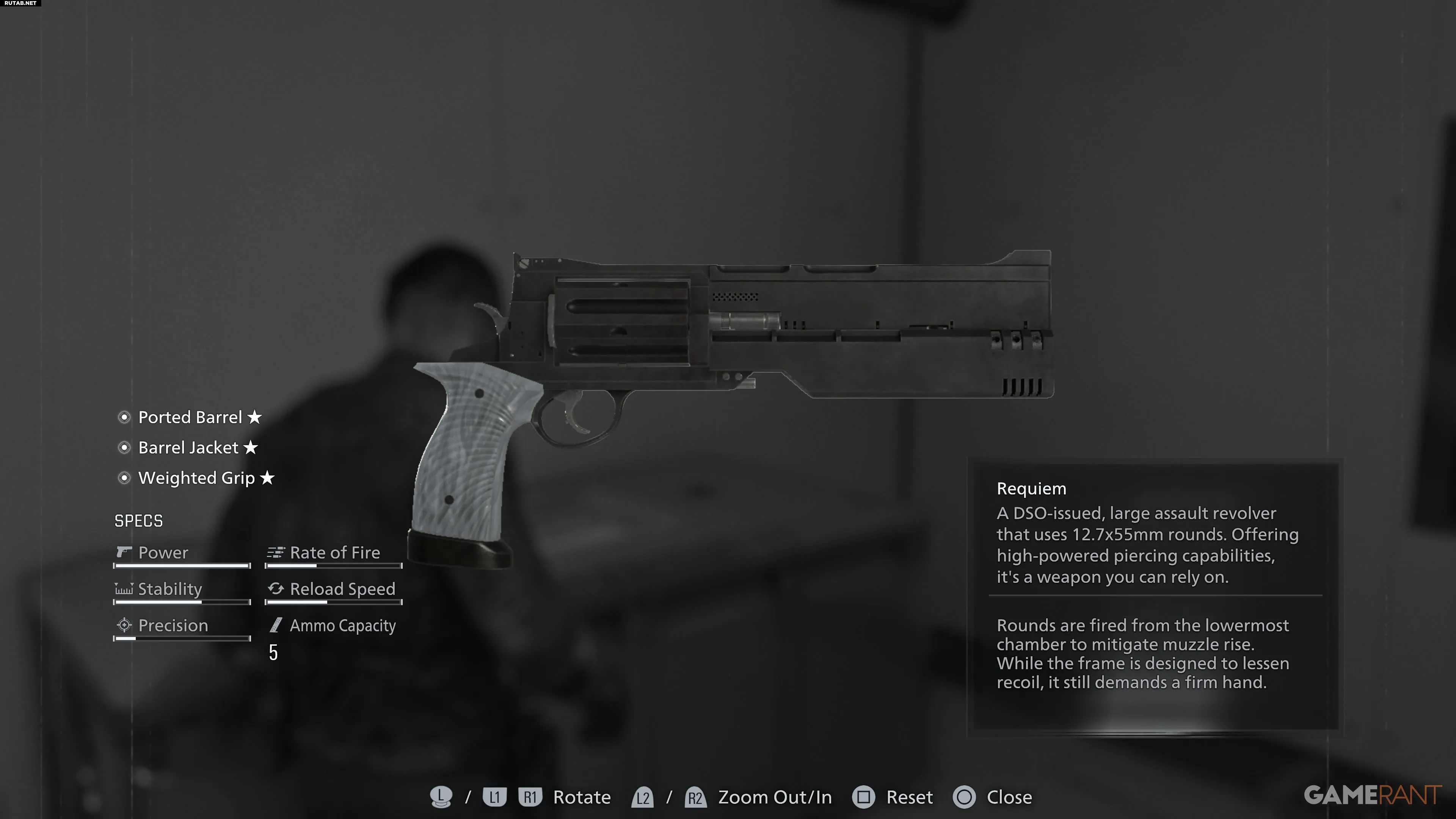 Requiem— револьвер Леона по умолчанию. Хотя он теряет его в Медицинском центре, позже, начиная с Восточного Раккун-Сити, оружие возвращается к нему.