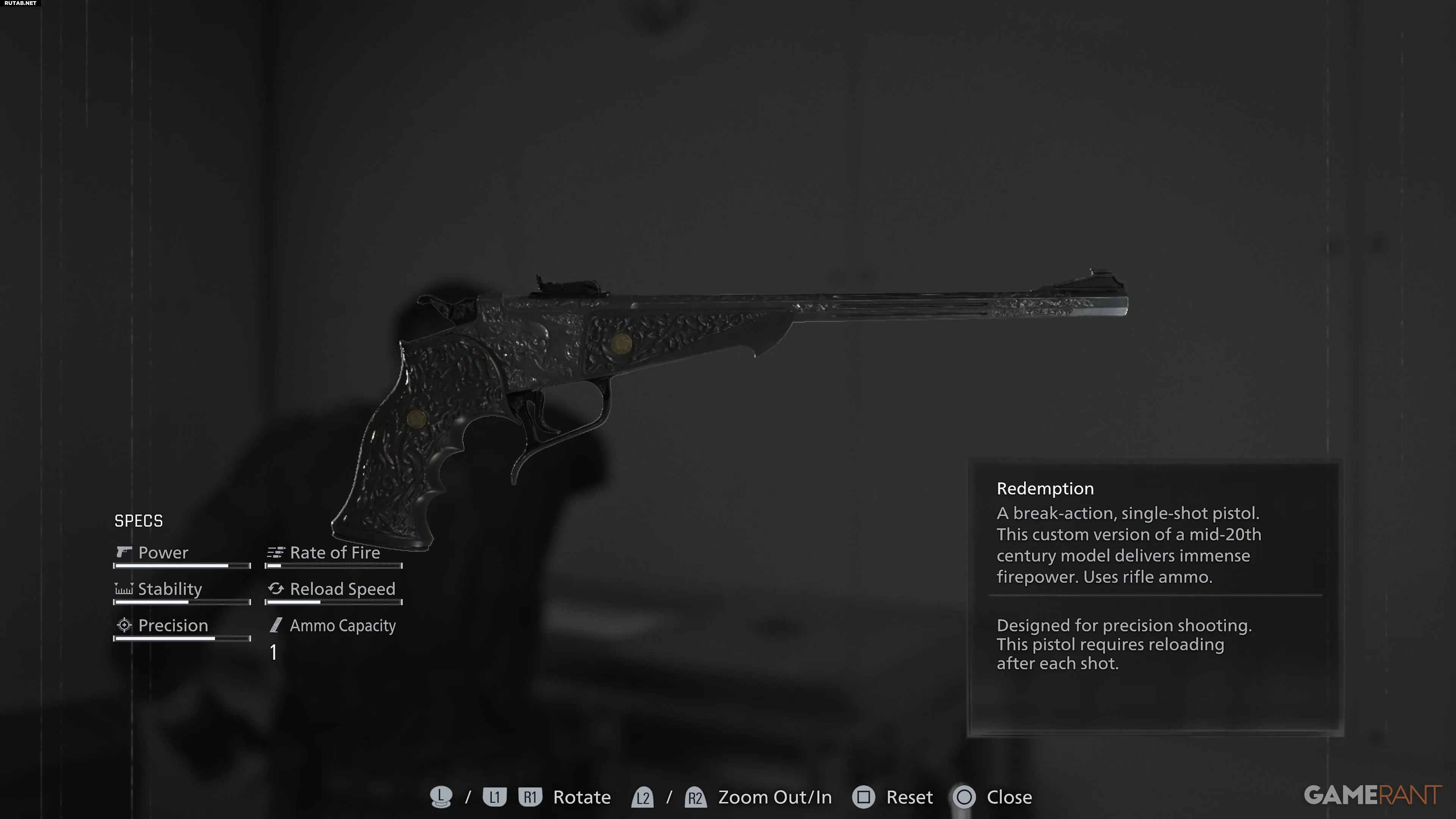Хотя Redemption скорее револьвер, чем винтовка, он использует винтовочные патроны. Его можно приобрести в магазине специального контента за 3,500 CP после завершения основной сюжетной линии.