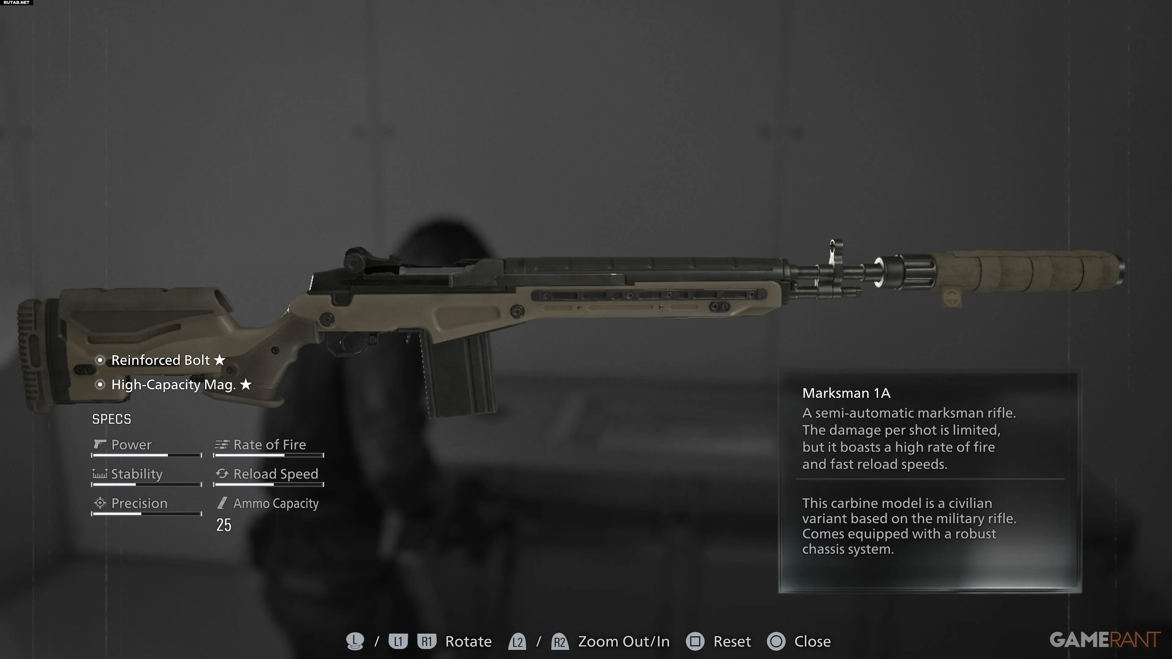 Винтовка Marksman 1A находится в контейнере BSAA 03, расположенном к востоку от заправочной станции в Восточном Раккун-Сити.