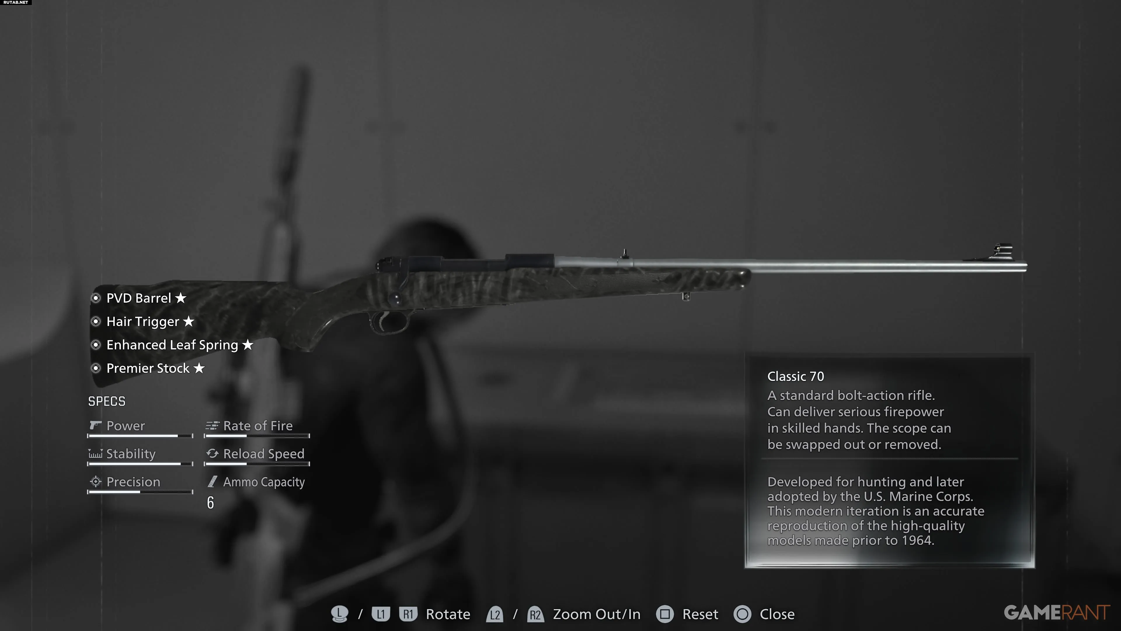 Classic 70 — первая снайперская винтовка, которую Леон автоматически получает во время прохождения раздела «Двор Медицинского центра».
