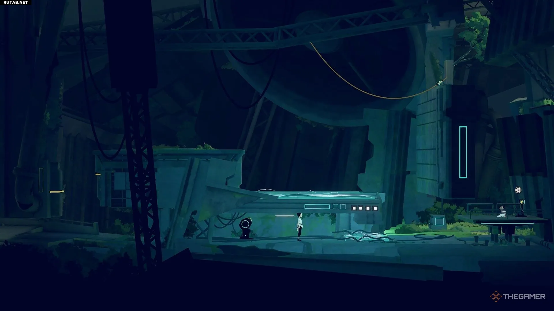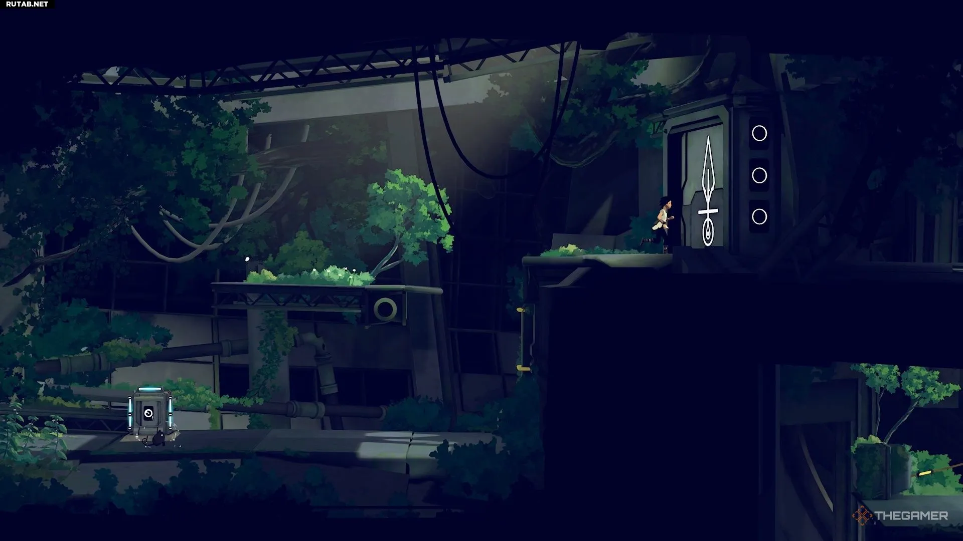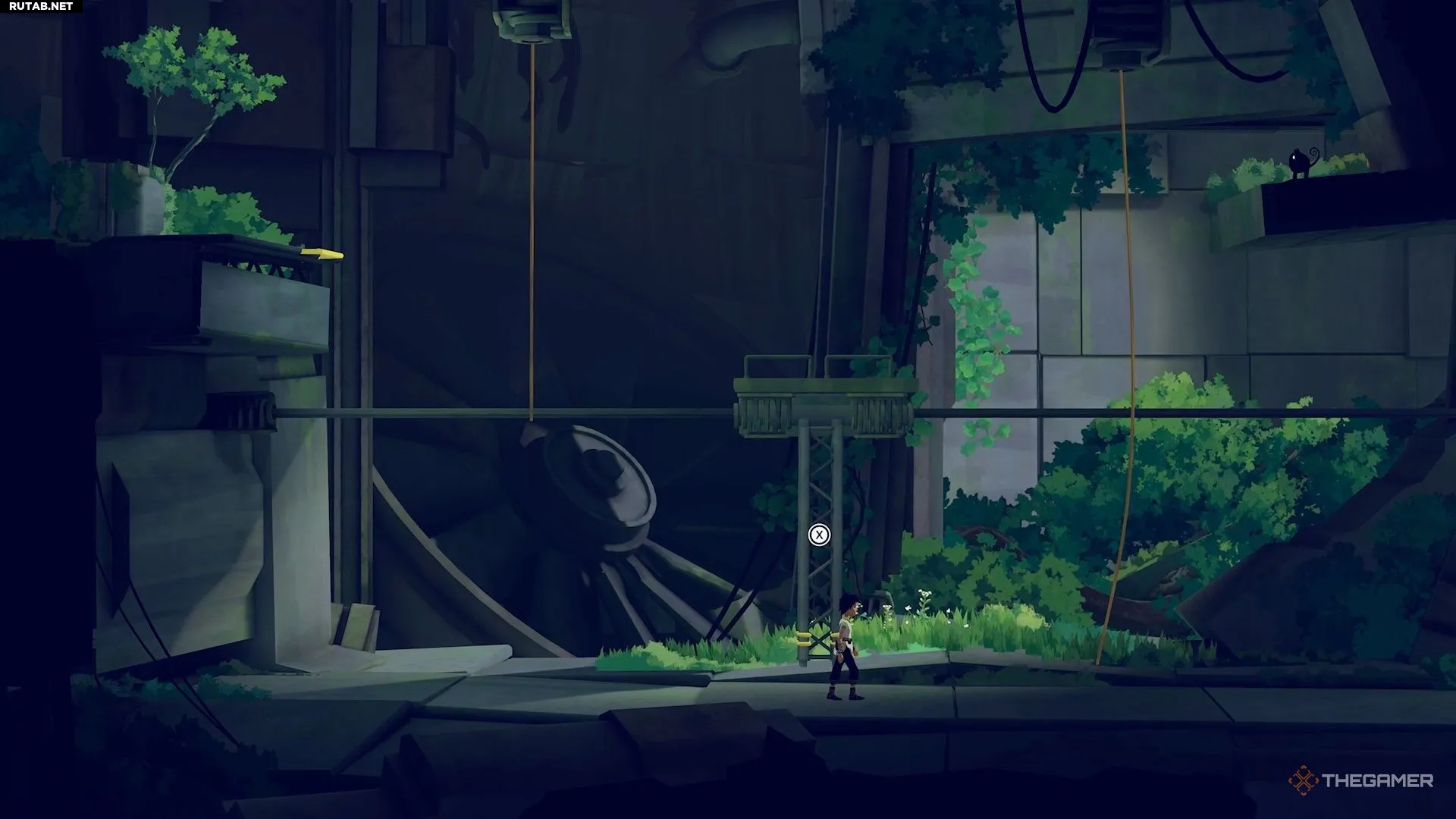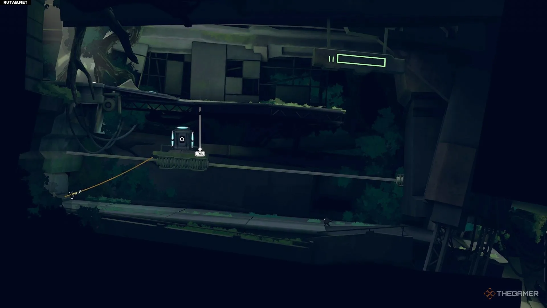 В следующей комнате находится генератор на платформе выше и частично электрифицированная верёвка. Используйте свою способность на генераторе, чтобы отключить ток, а затем быстро подбегите к верёвке и нажмите кнопку на экране, чтобы перерезать её. Это заставит платформу покатиться вправо.