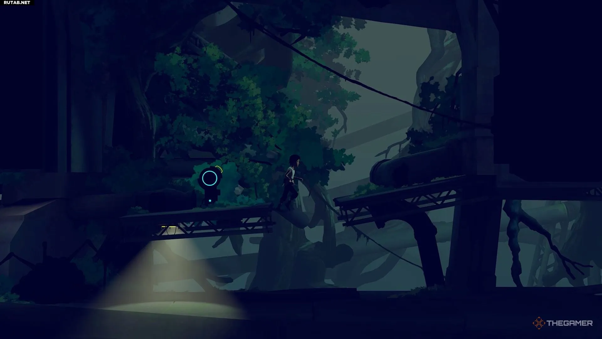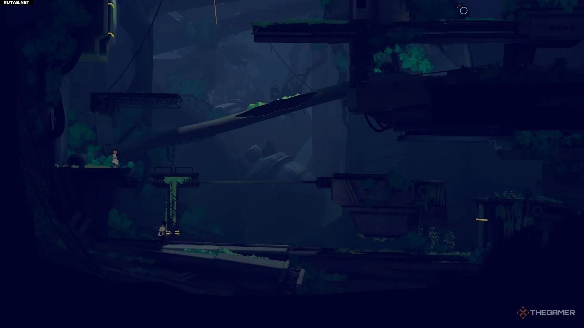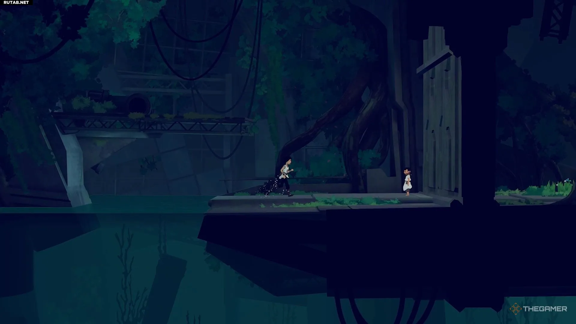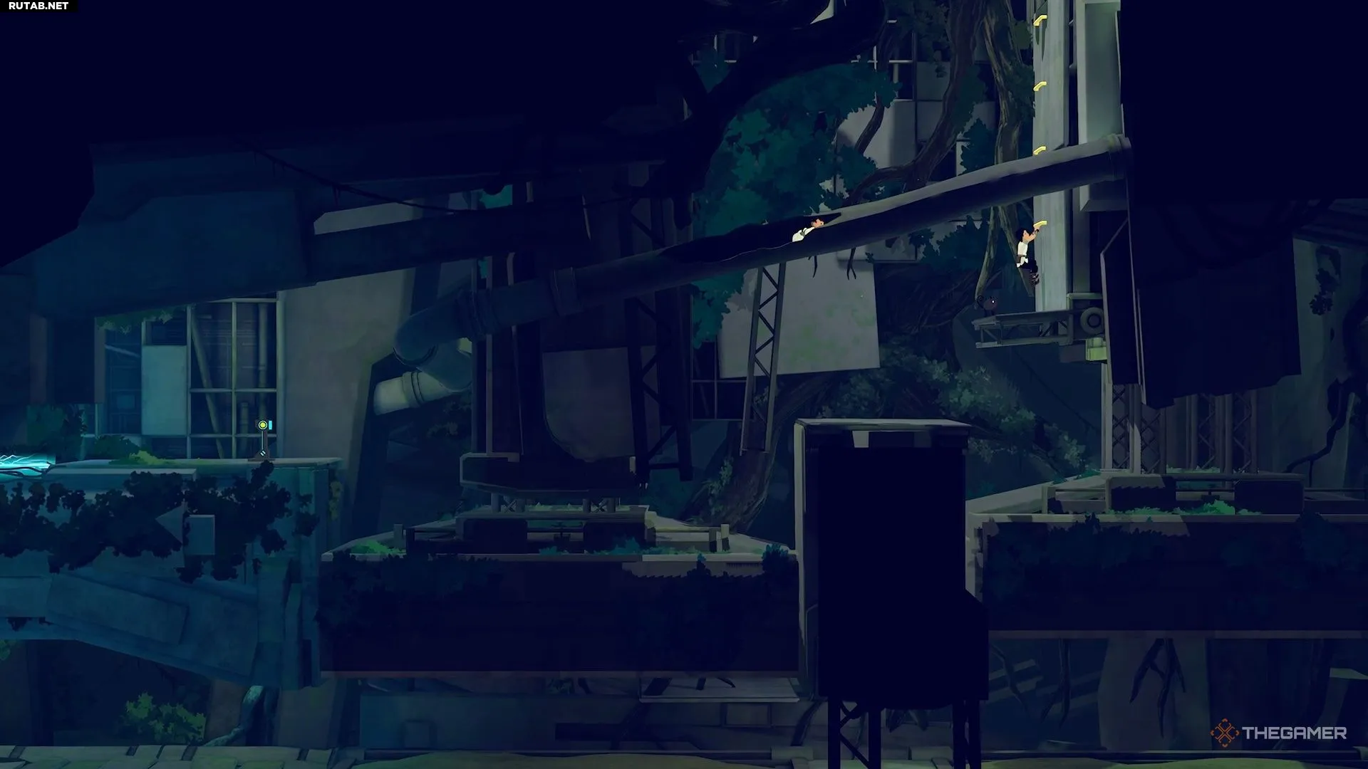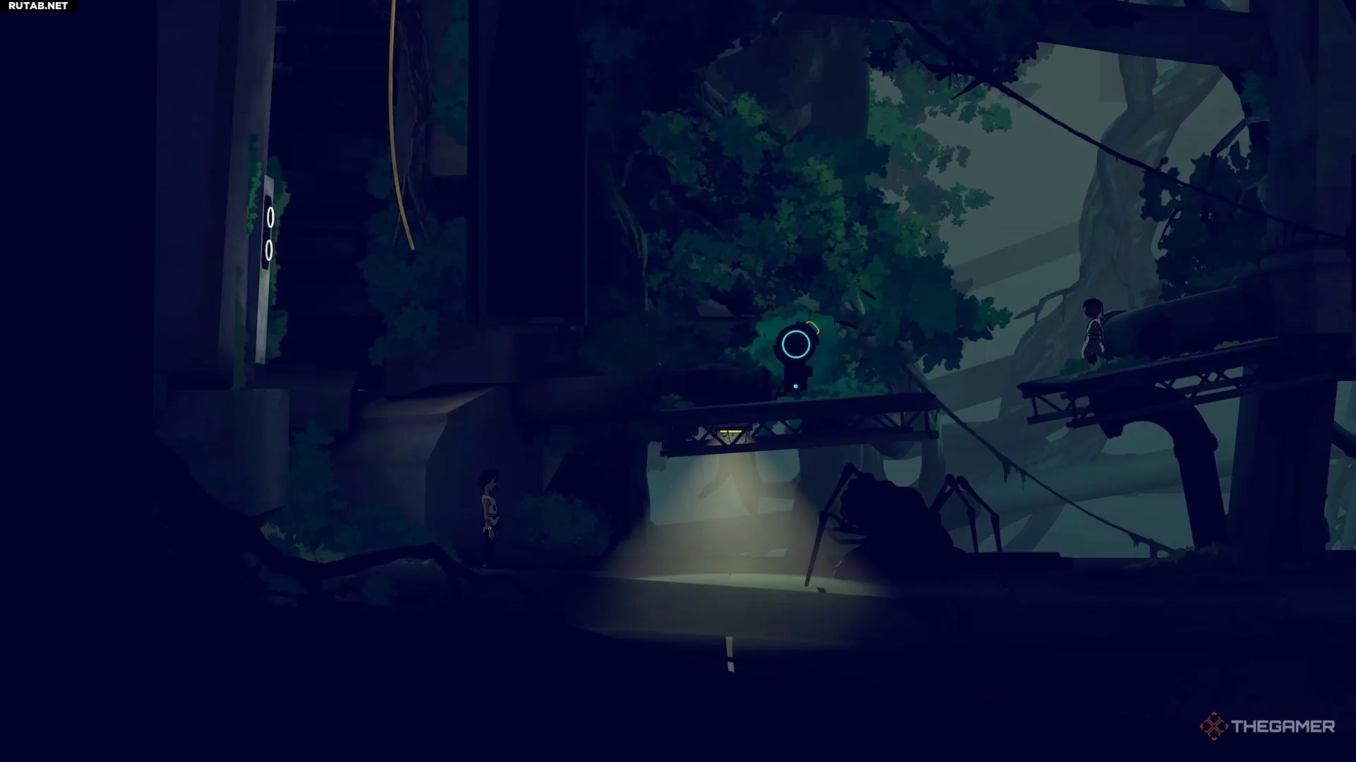 Когда Муи встанет на объект, появится странное щупальце, на которое можно запрыгнуть, чтобы продвинуться дальше. Вам не нужно помогать Муи, так как она сможет просто забраться наверх.