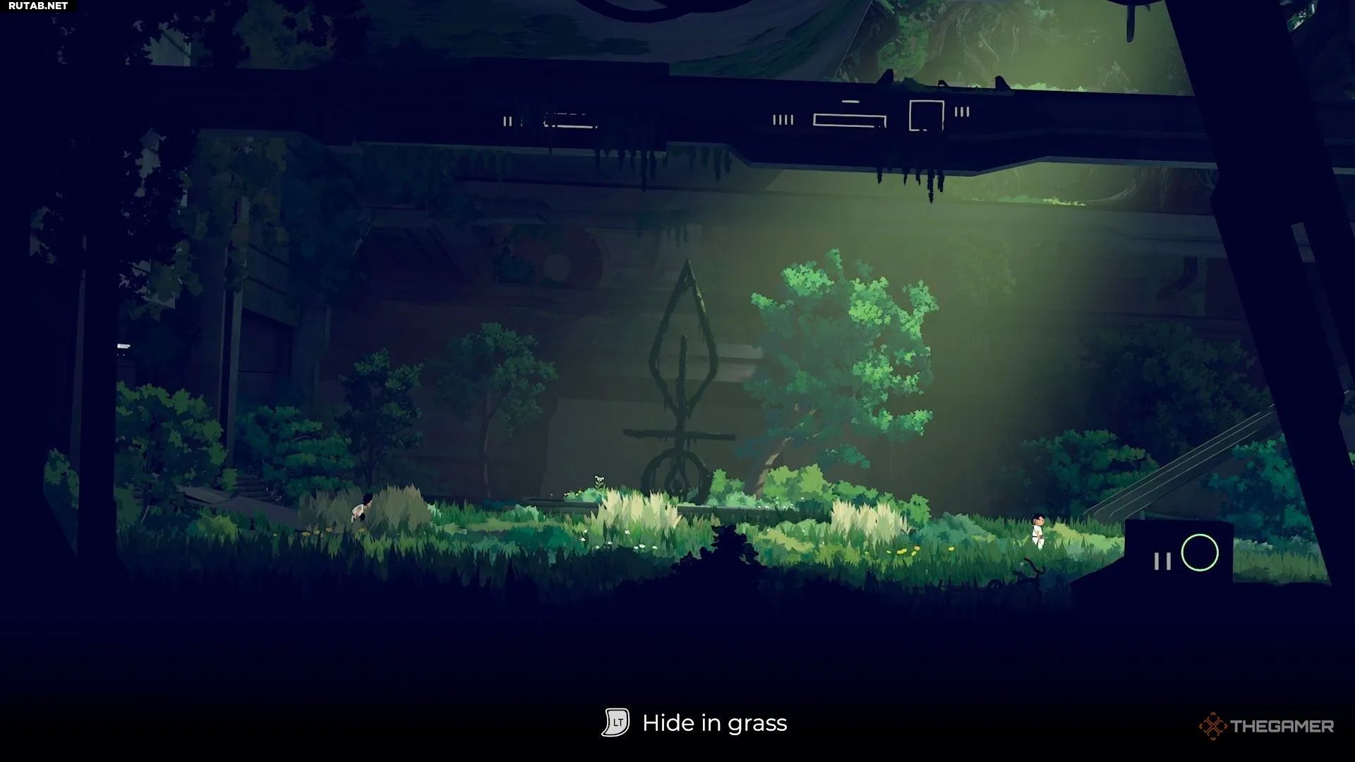 Затем вы встречаете ребёнка и играете с ним. Чтобы выиграть, вам нужно подкрасться к нему так, чтобы он вас не увидел. Используйте высокую траву. Каждый раз, когда ребёнок смотрит направо, перебегайте к следующему крупному участку травы и приседайте. Повторите это несколько раз, пока не окажетесь рядом с ним.