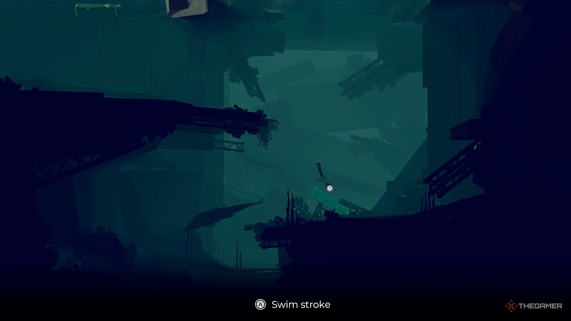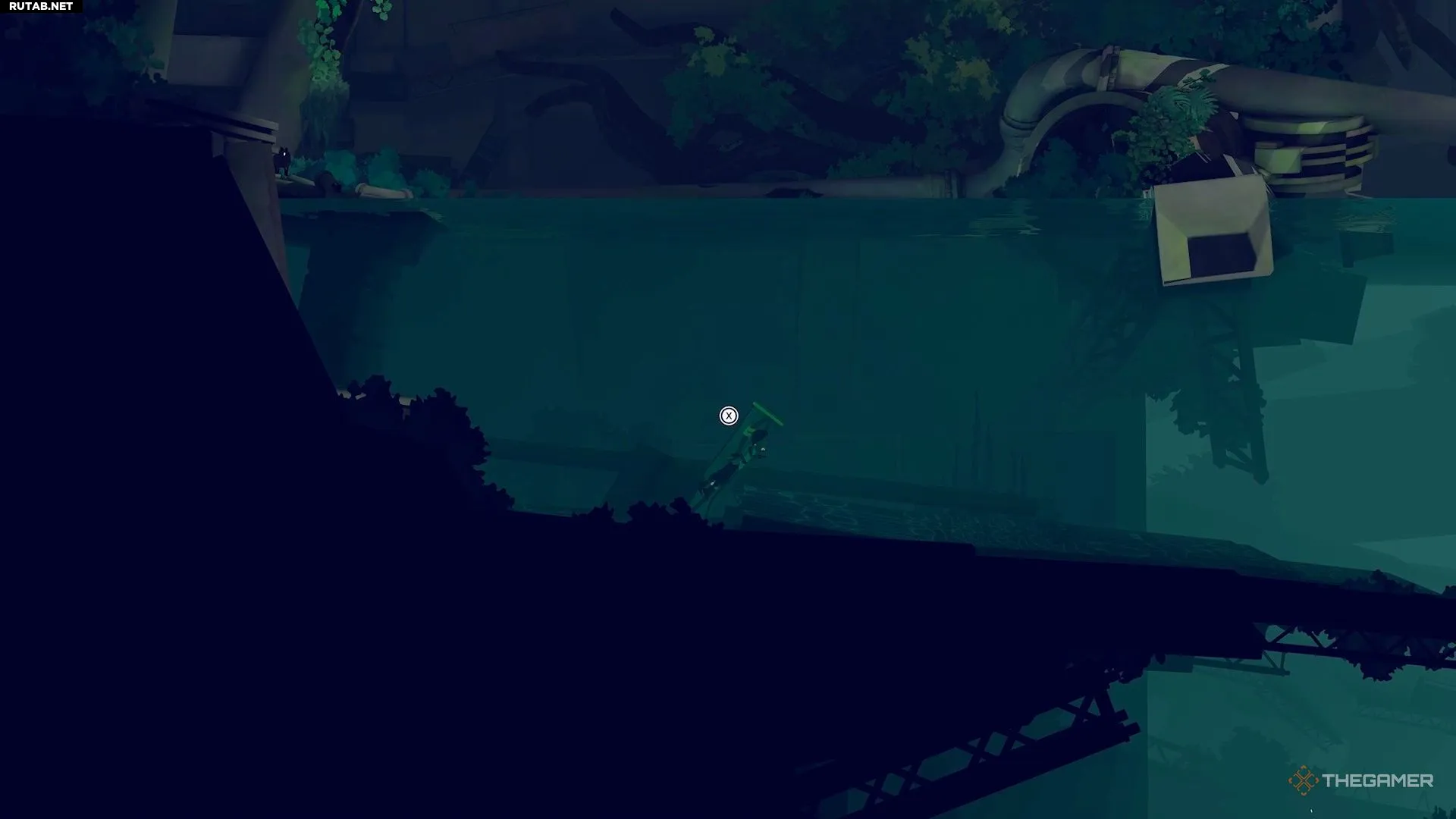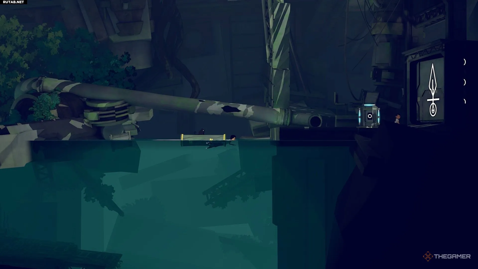 Чтобы преодолеть первую, нырните в воду и схватите прямоугольный блок на дне. Взяв его, вы автоматически вытолкнете его на поверхность. Если блок окажется в правильном положении, Муи запрыгнет на него.