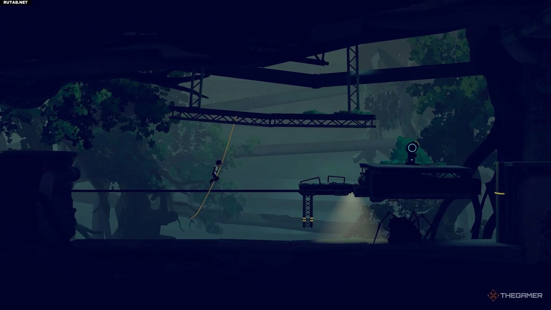 Наконец, снова используйте верёвку, чтобы забраться на передвижную платформу, а затем покиньте зону с правой стороны.