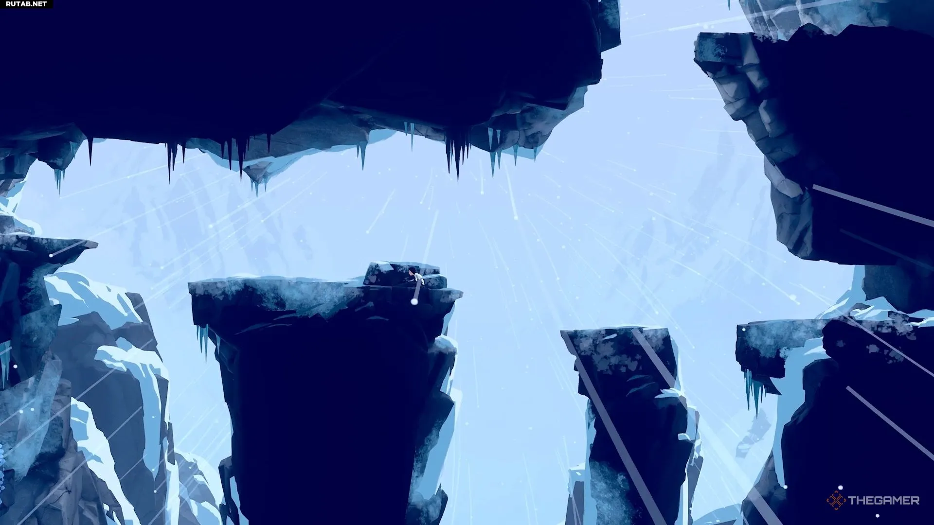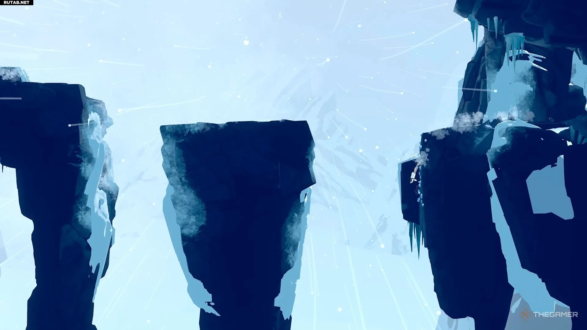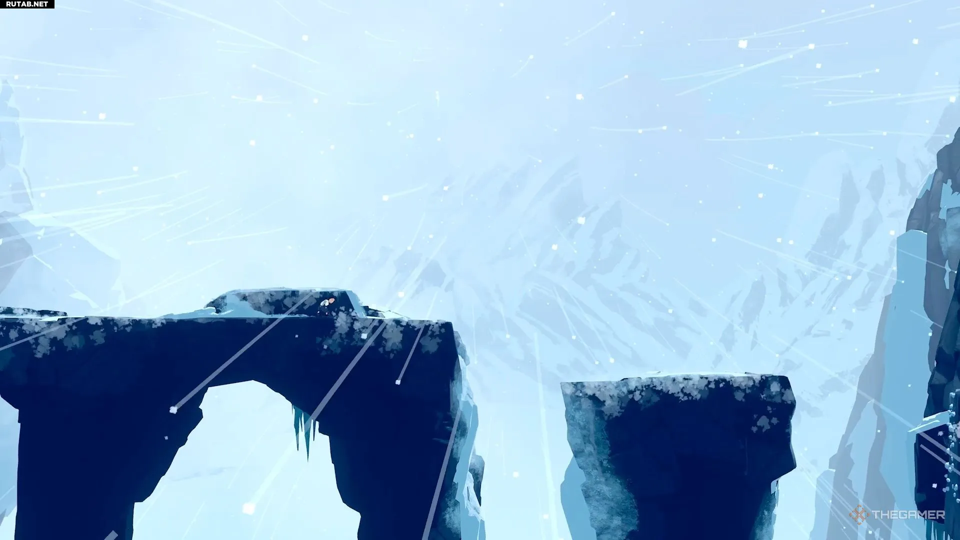 Поэтому, когда ветер стихает, быстро бегите и перепрыгивайте через пропасть, а затем присядьте за камнем — он защитит вас от ветра. Дождитесь, пока ветер снова утихнет, и сделайте ещё несколько прыжков, чтобы добраться до безопасной зоны.