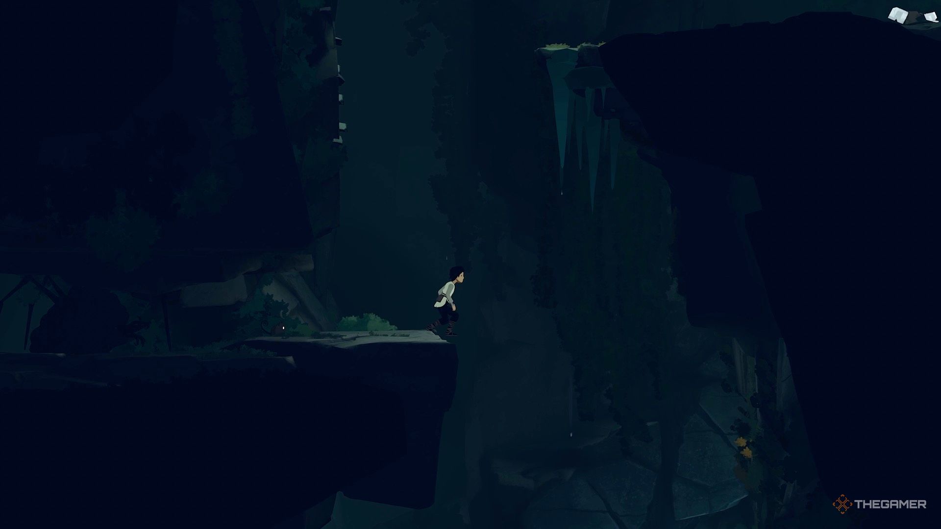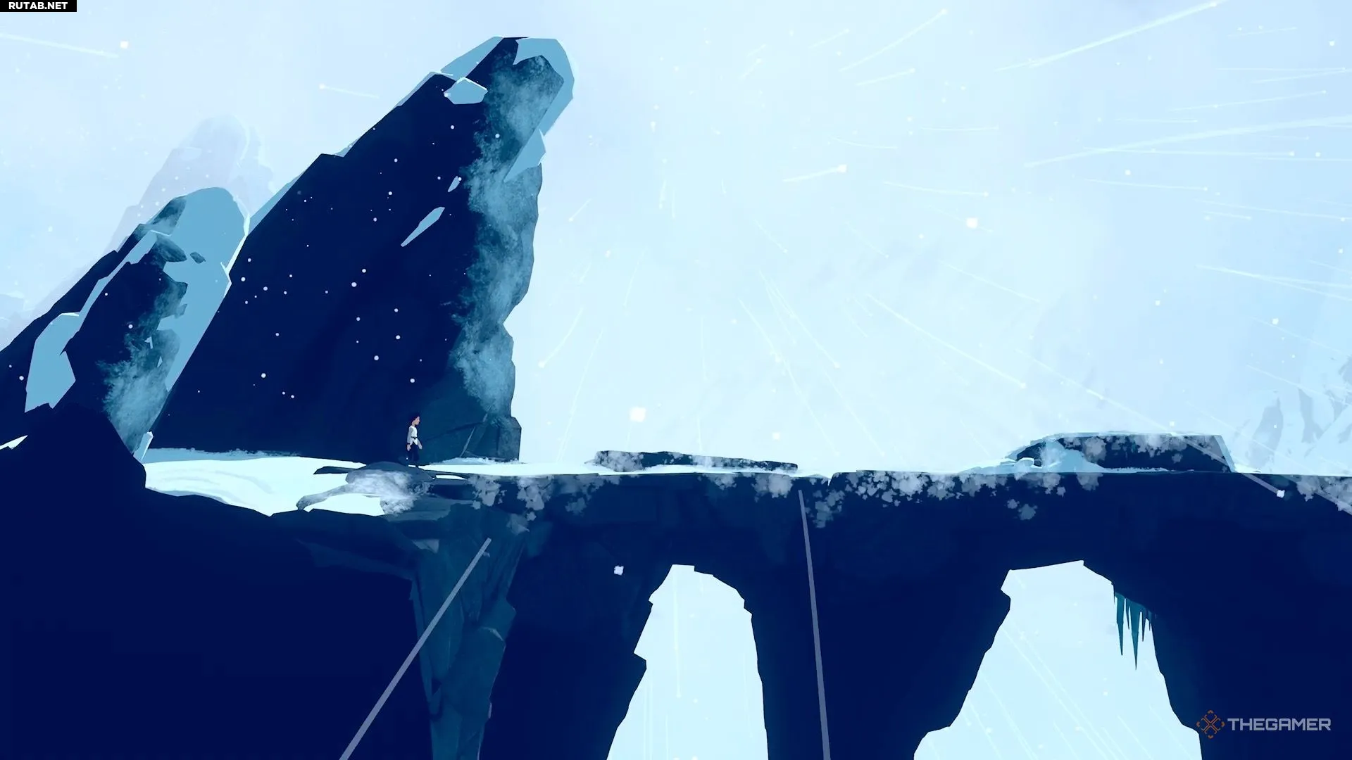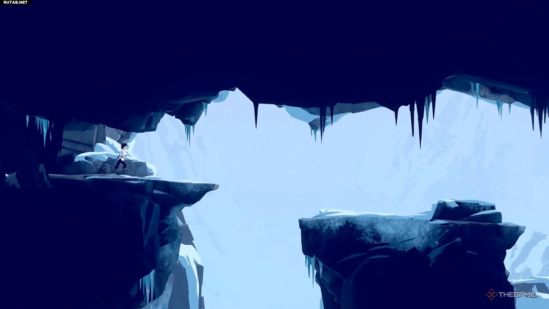 Поэтому, когда ветер стихает, быстро бегите и перепрыгивайте через пропасть, а затем присядьте за камнем — он защитит вас от ветра. Дождитесь, пока ветер снова утихнет, и сделайте ещё несколько прыжков, чтобы добраться до безопасной зоны.