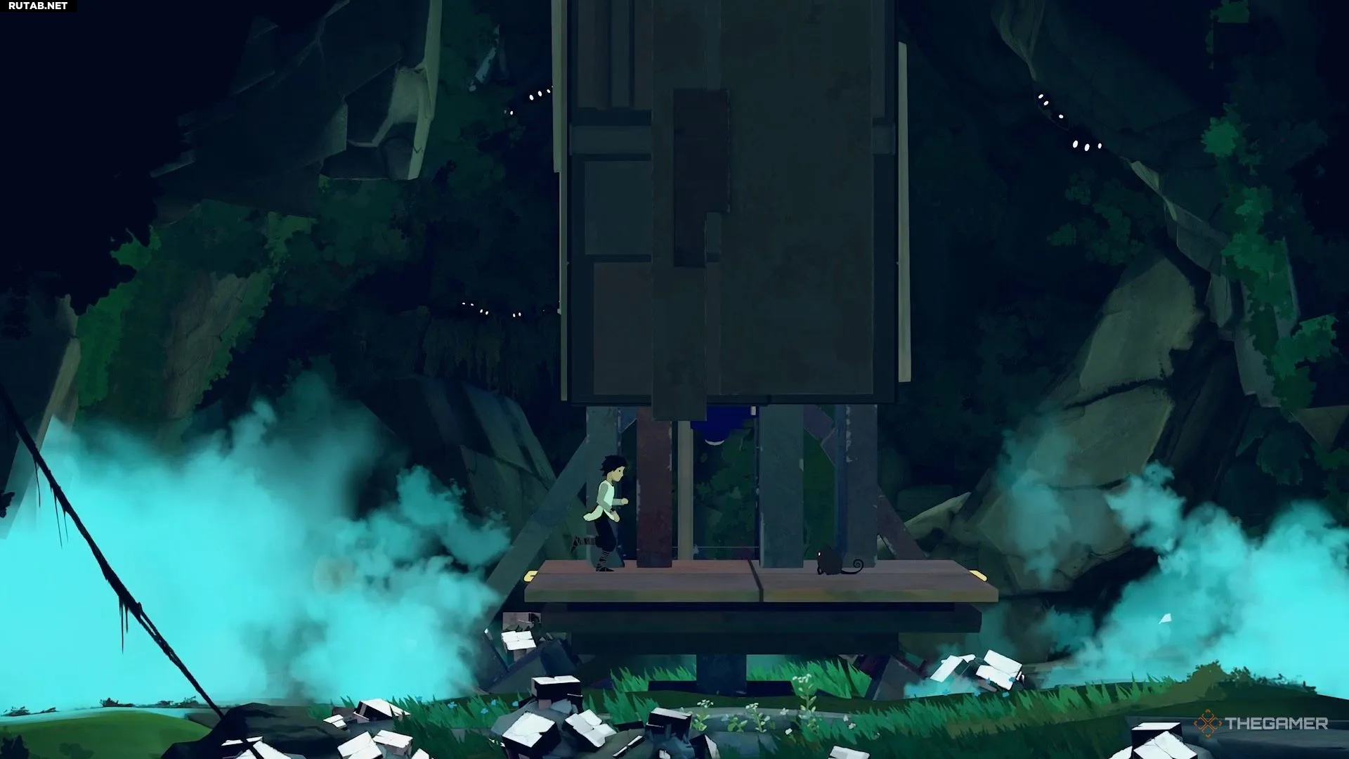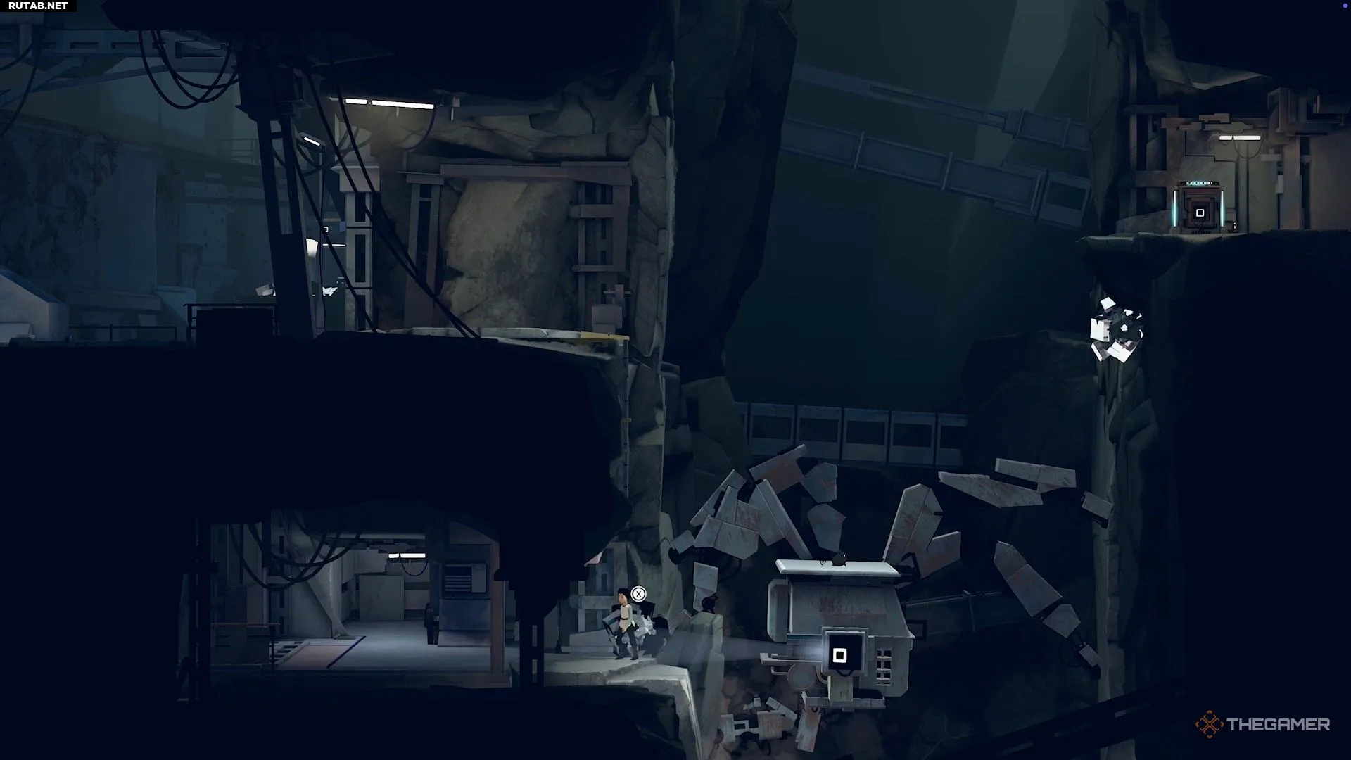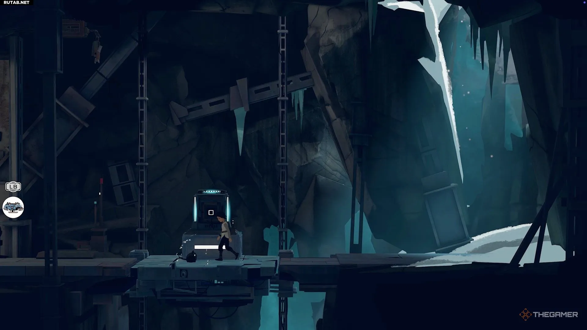 Наконец, снова возьмите под контроль Лану, спрыгните с робота и войдите в область справа. Потяните там рычаг, чтобы выключить камеру, и заставьте Муи использовать свою силу на генераторе, чтобы привести лифт в движение. Это отправит вас обоих дальше в гору.