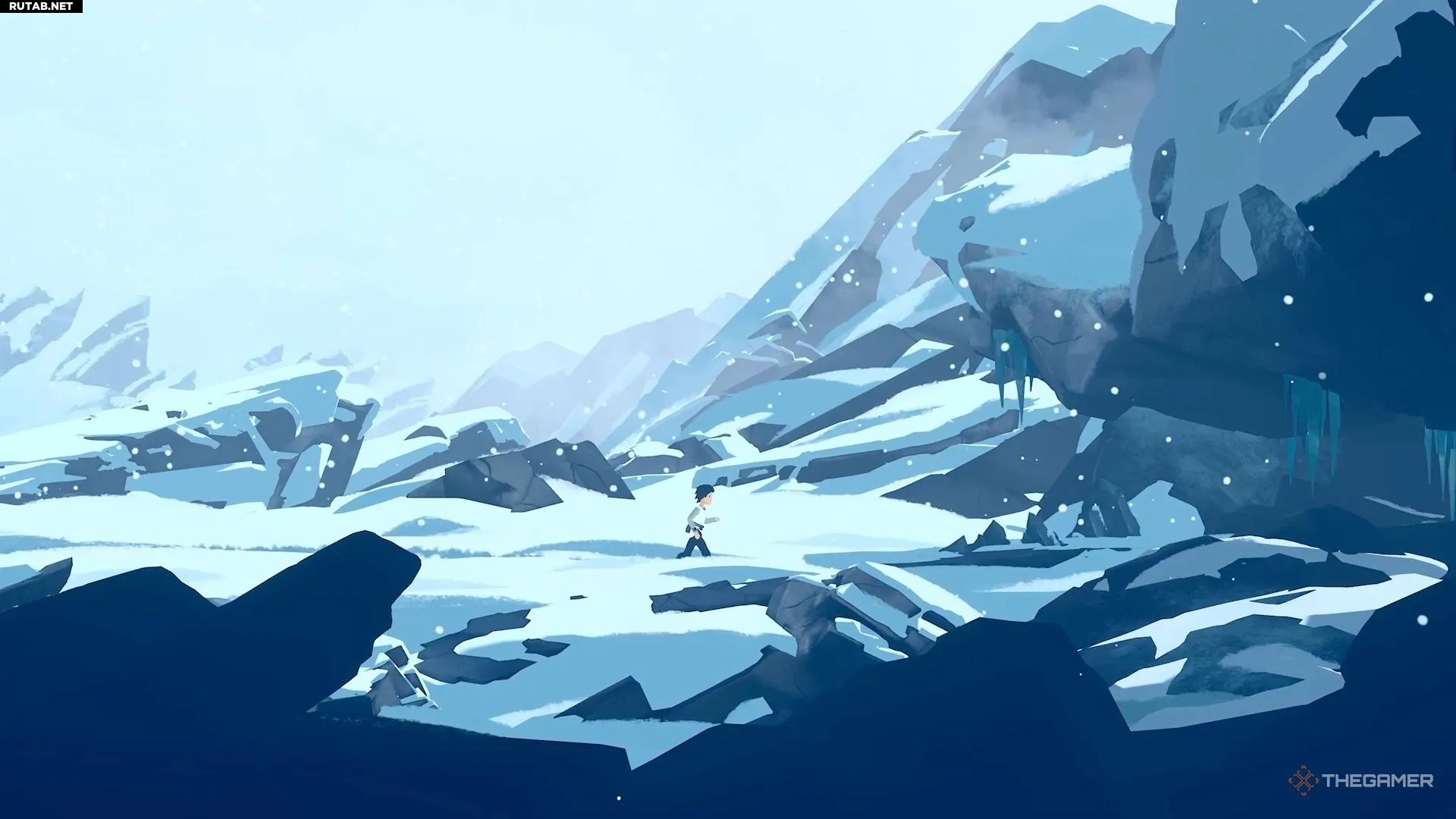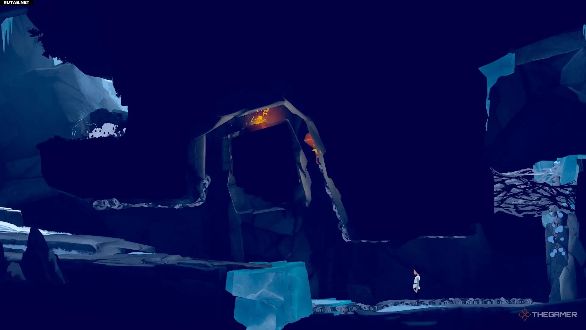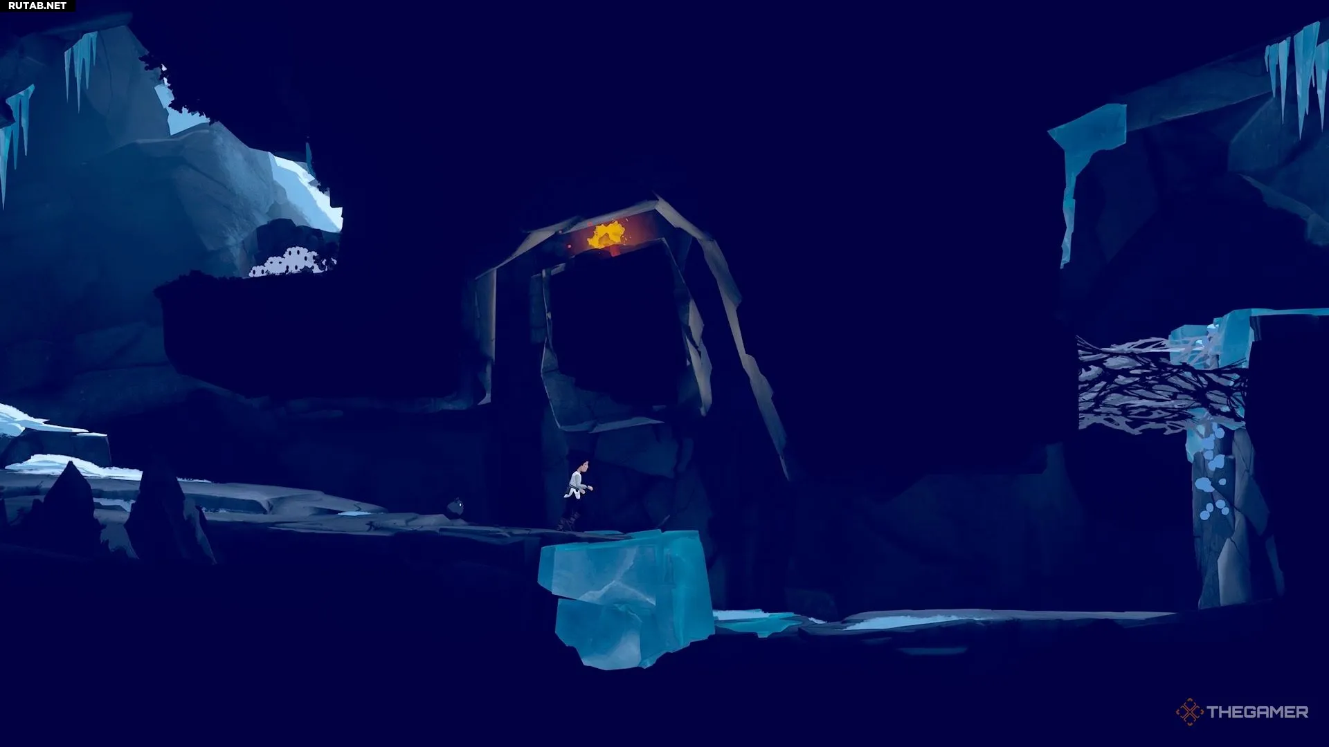Чтобы начать главу, бегите вперёд, пока не достигнете стены с выступами синего льда. Используйте их, чтобы забраться наверх.
