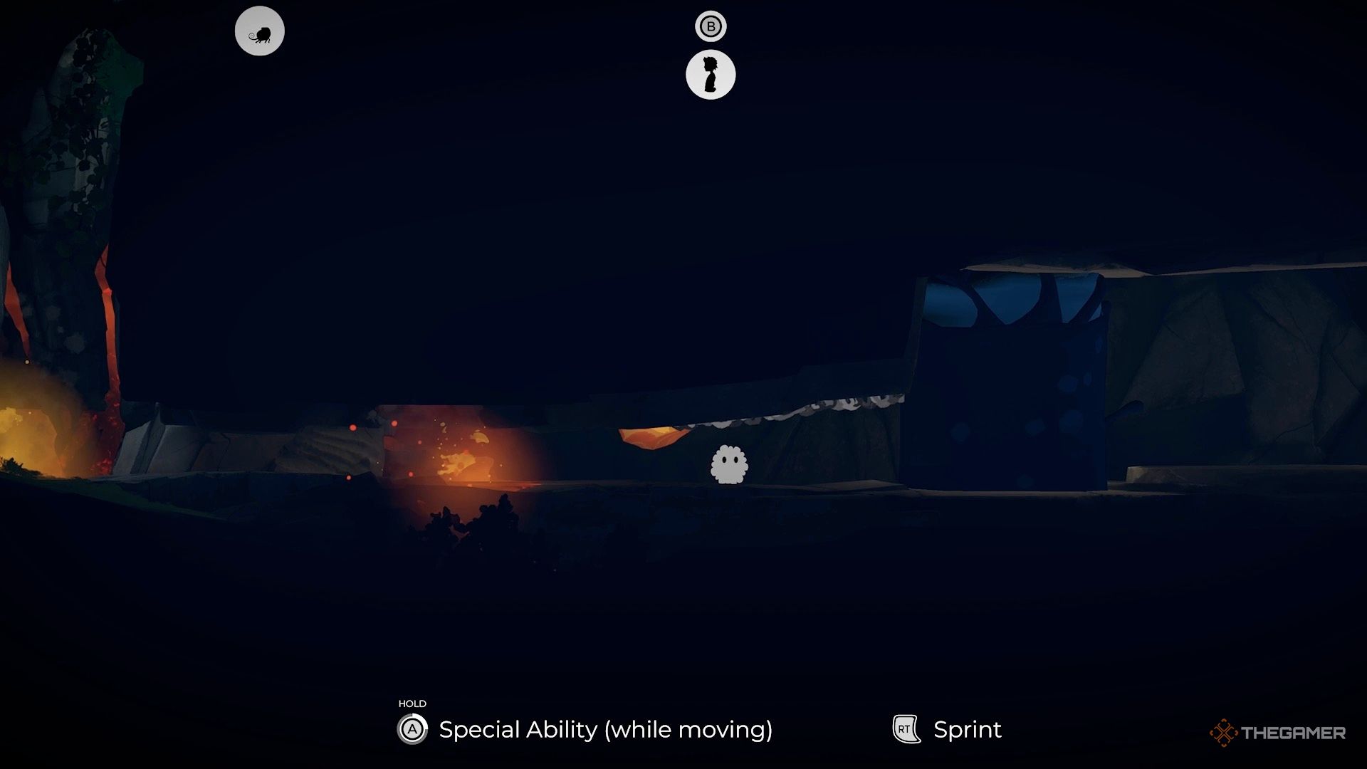 В облике этого существа зажмите кнопку особой способности, указанную внизу экрана, и начните двигаться. Это создаст горючий фитиль.