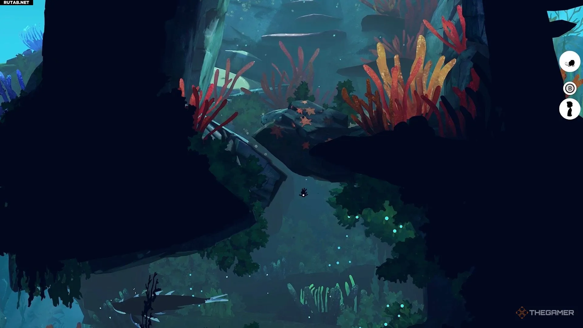 В этом разделе игры головоломок почти нет. Сначала вы ныряете в воду, и Муи прыгает в своё чёрно-жёлтое растение, что позволяет вам погрузиться вместе с ней. Возьмите его и плывите вниз направо.