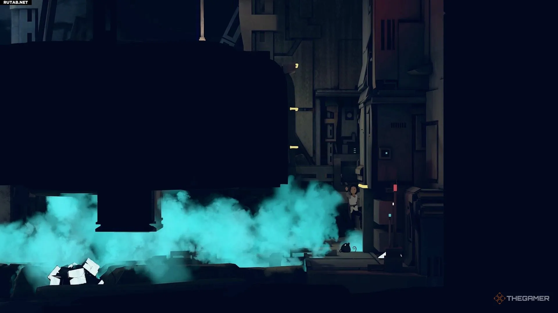 Затем оттащите руду, чтобы робот снова поднялся наверх. После этого Муи должна перепрыгнуть на генератор и использовать свою особую способность на нём, чтобы открыть лифт внизу, где находится Лана.