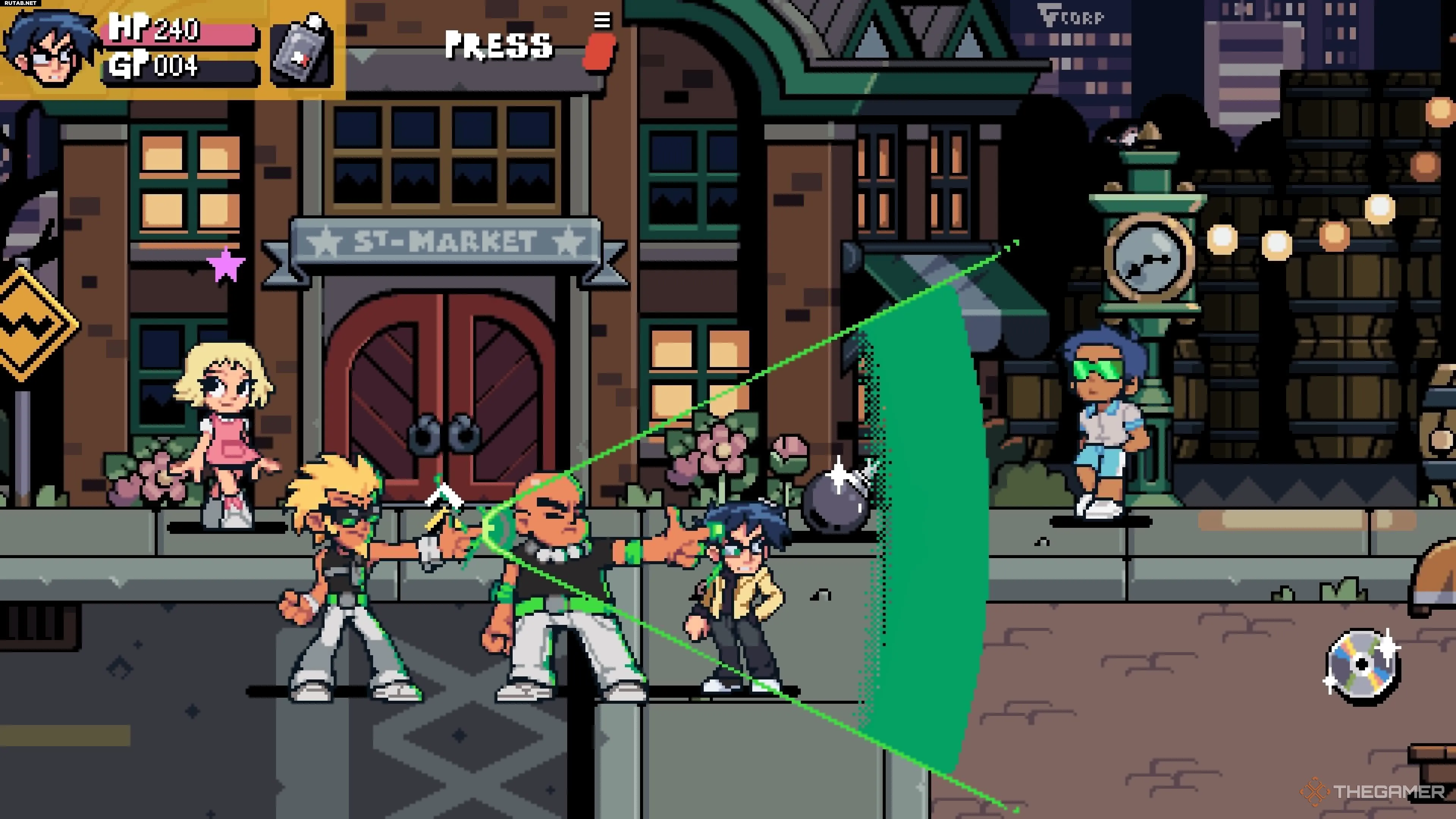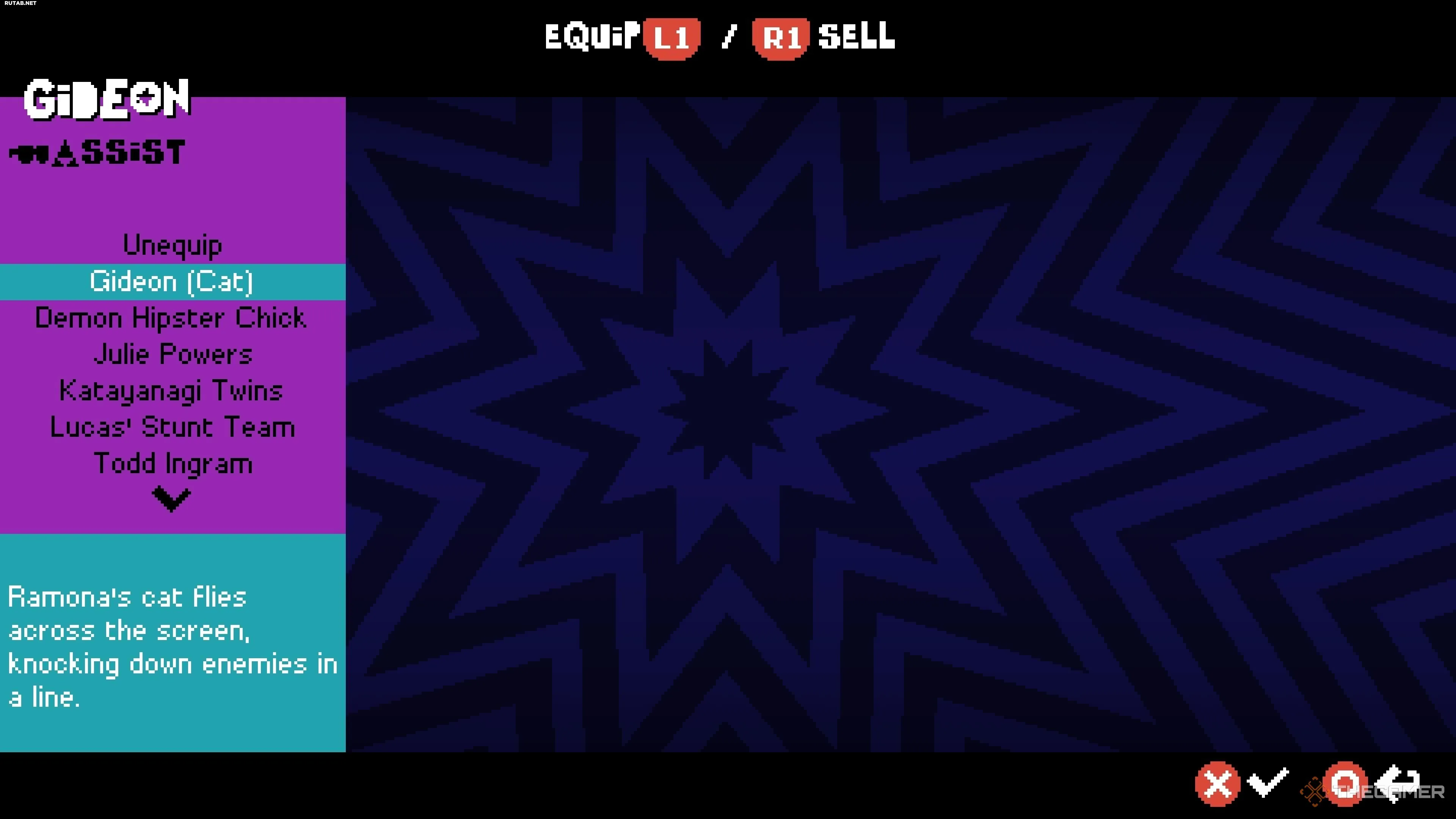 Если вы играли в оригинальную игру Scott Pilgrim, то ассисты будут вам знакомы. В любой момент можно нажать кнопку (L1 на PlayStation, LB на Xbox), чтобы вызвать другого персонажа для помощи особым способом. Одни лечат вас, другие наносят урон врагам поблизости, а у некоторых есть довольно уникальные эффекты. Вы можете менять ассиста в любое время через меню экипировки.