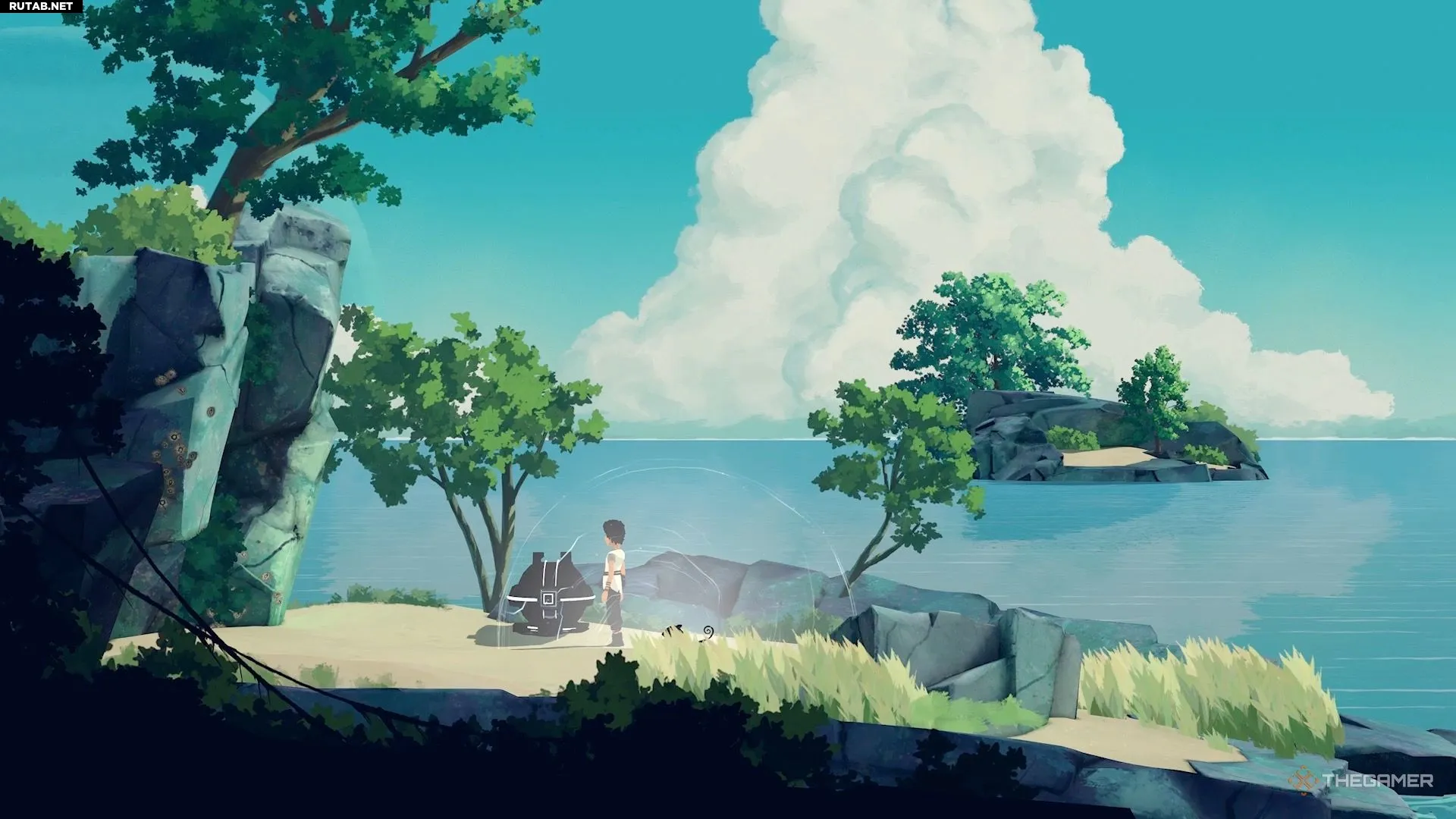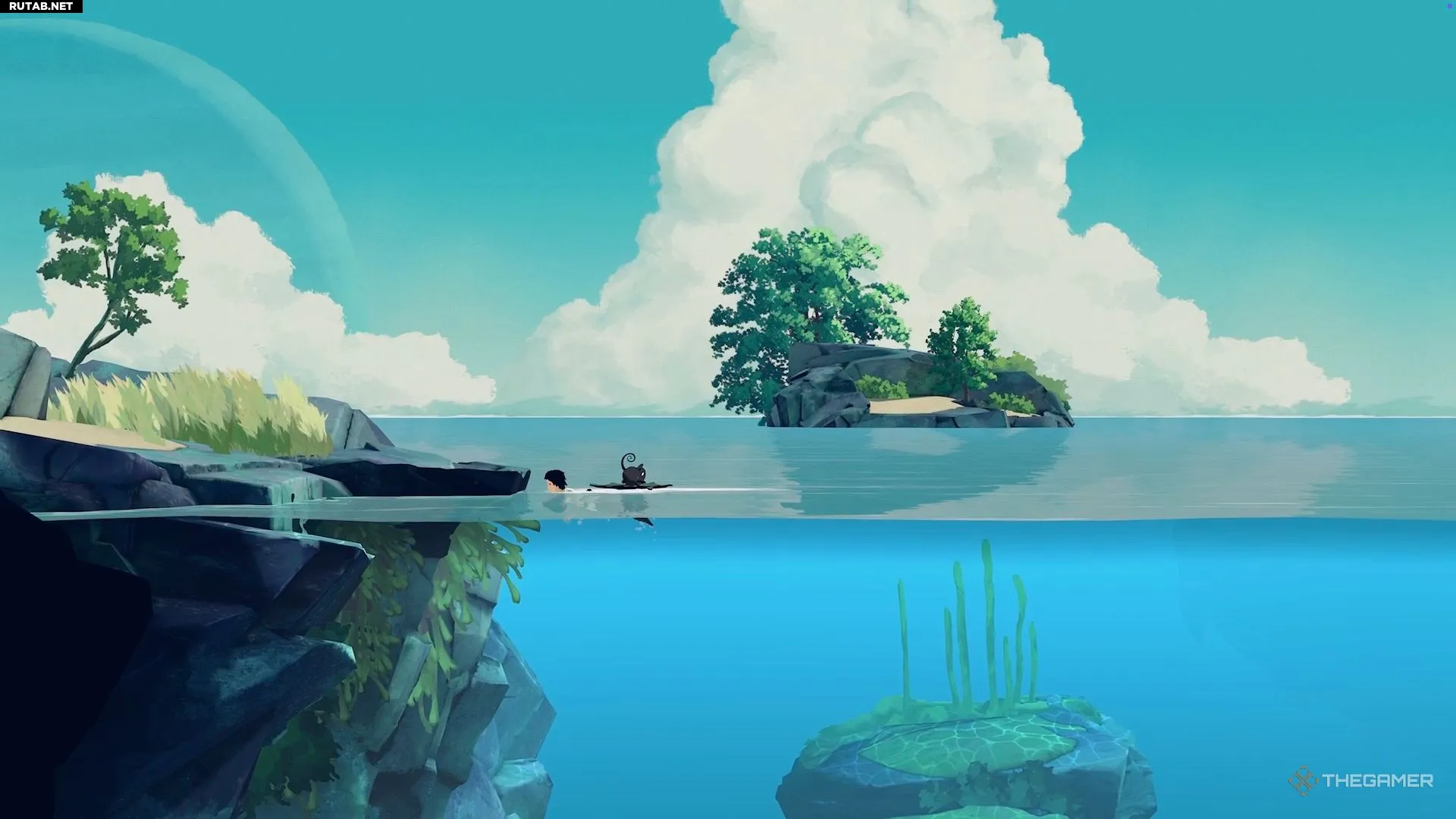 После того как вы доставите всех электрических медуз на поверхность для Муи, вы используете своего спутника, чтобы открыть чёрные решётки под водой. Затем вы попадёте в большую открытую зону. Подплывите к поверхности и двигайтесь налево, чтобы найти небольшой островок. Этот коллекционный предмет находится именно там.