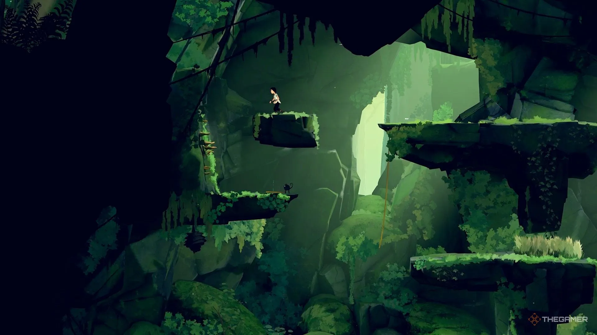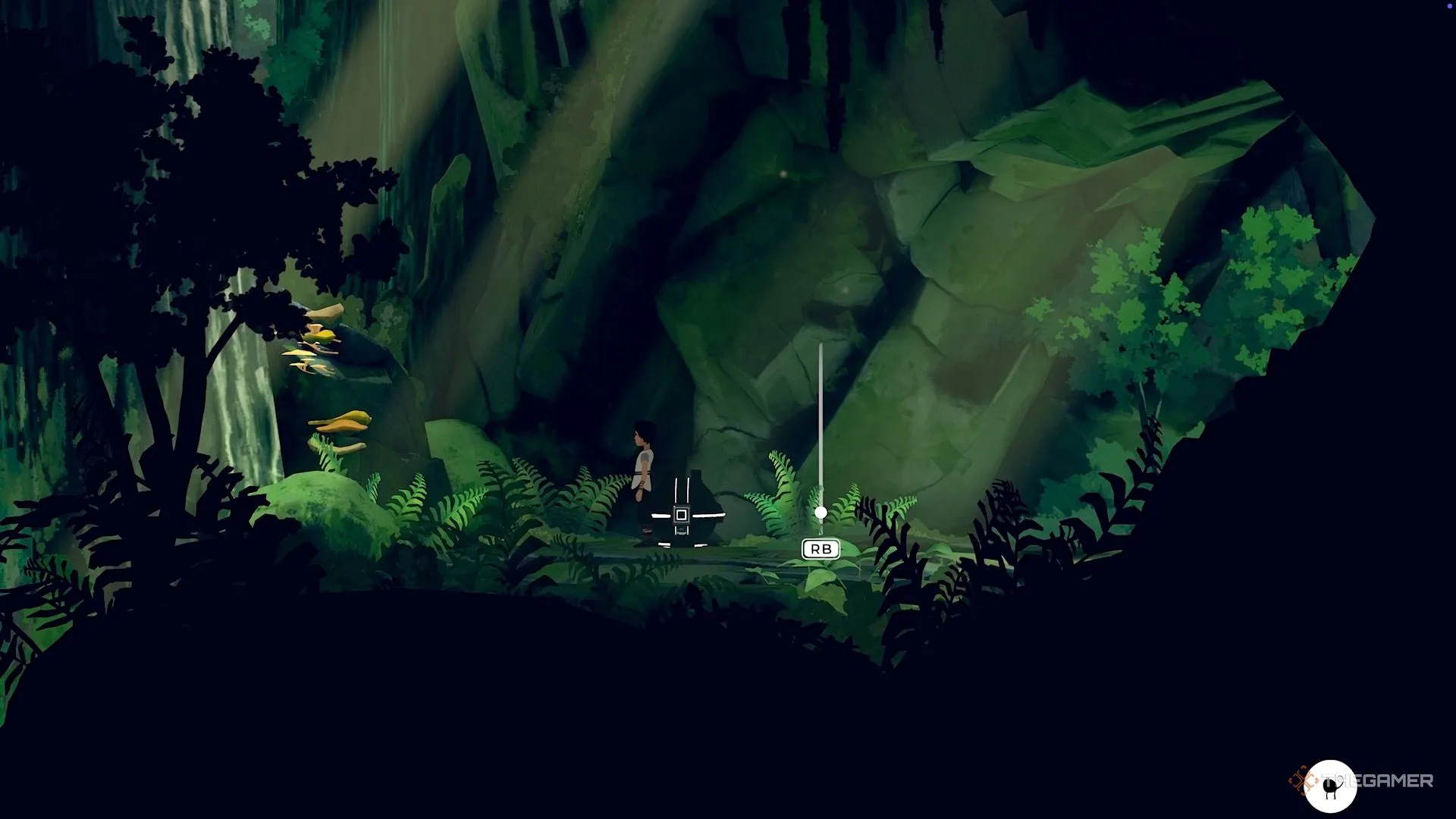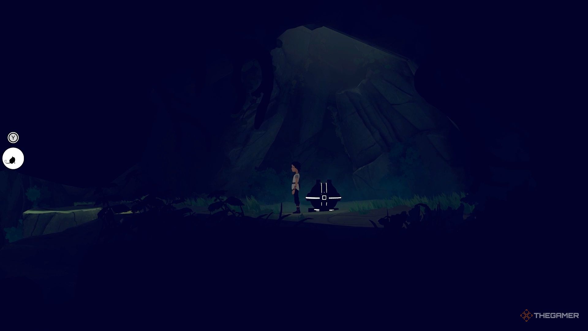 Очень рано в третьей главе вы попадёте на участок, где дует сильный ветер. Вместо того чтобы двигаться по сюжету и карабкаться наверх этой зоны, идите направо. Затем спрыгните вниз в небольшую пещеру, чтобы найти сундук с голограммой.