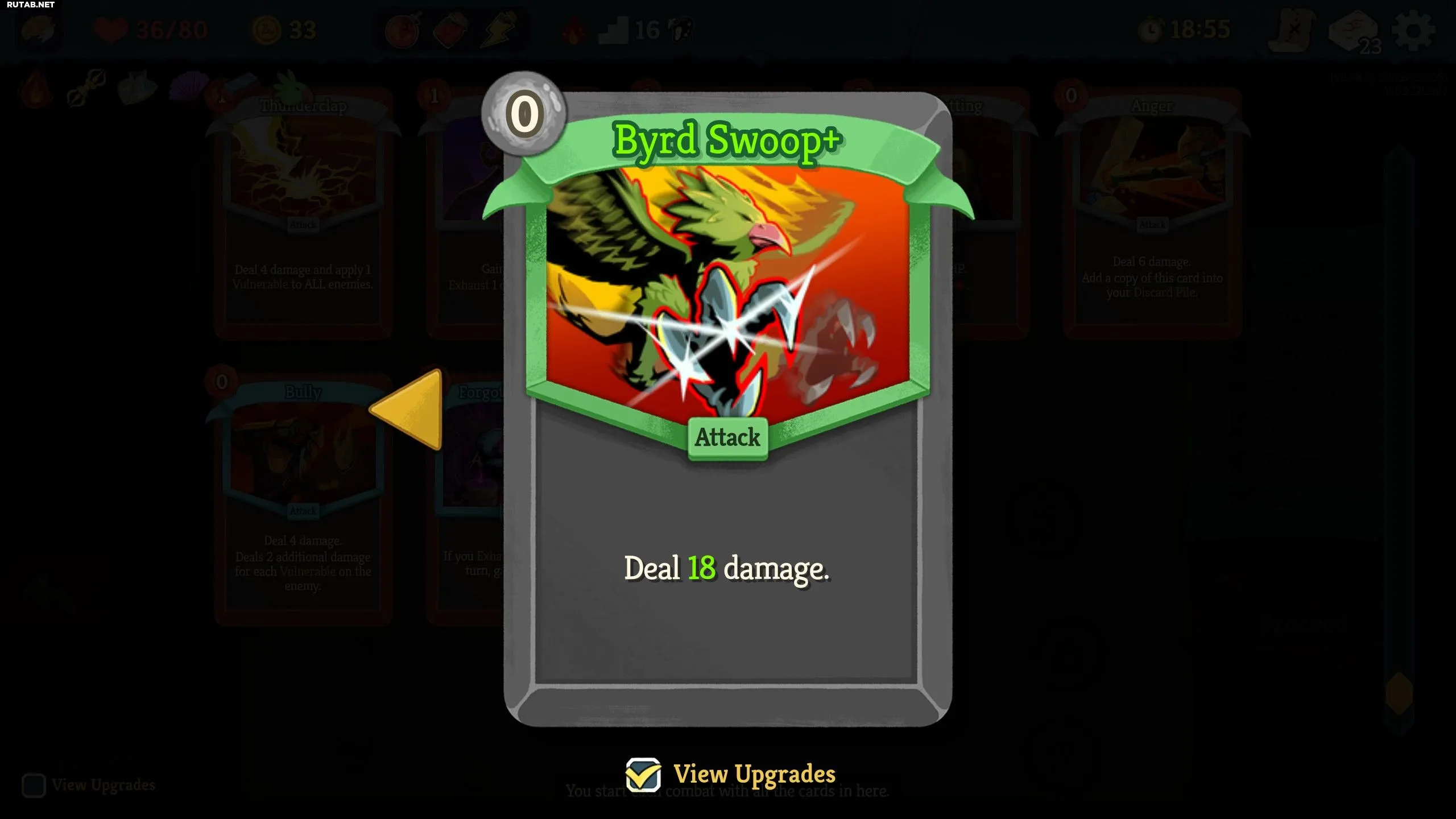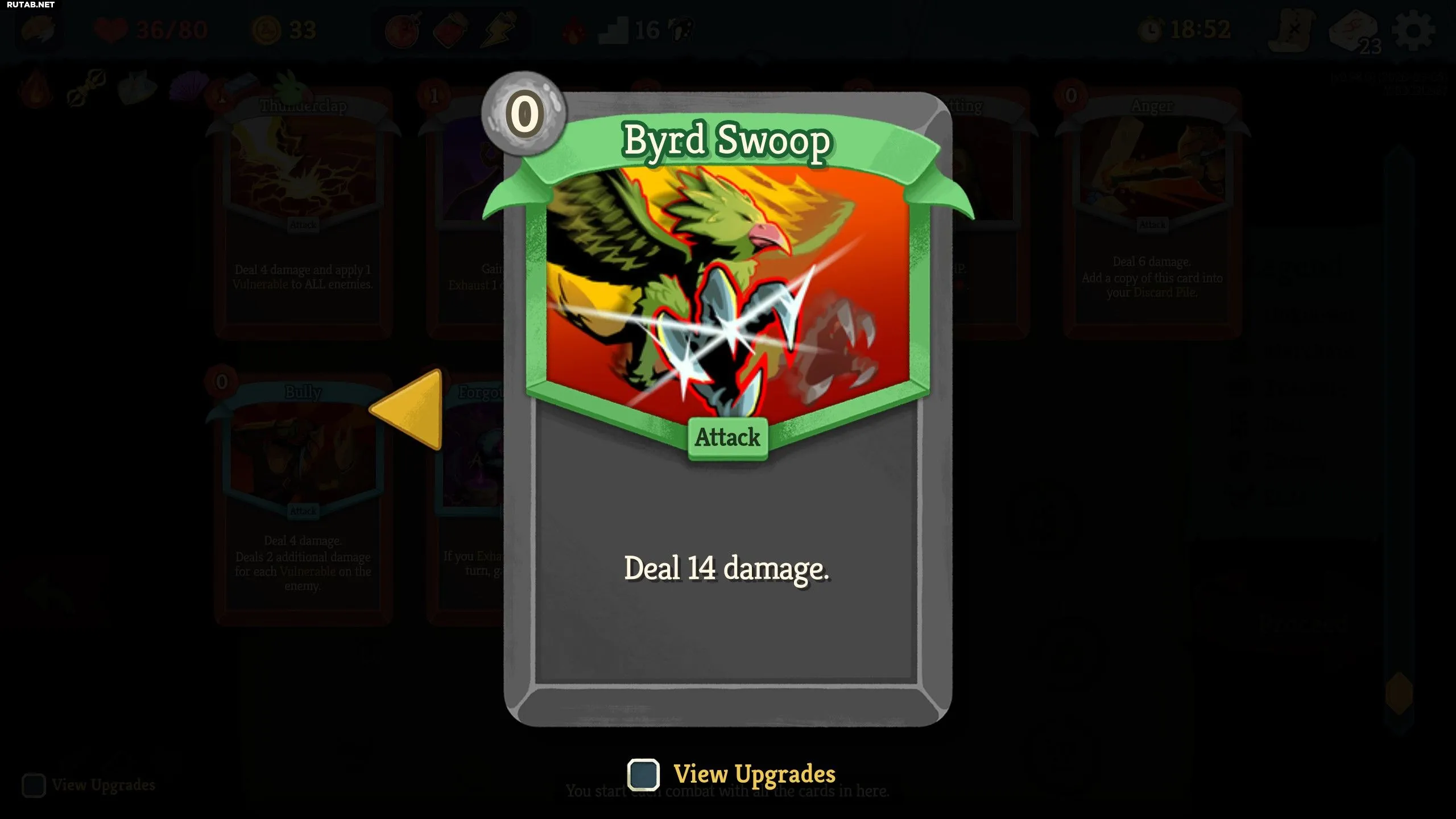 «Пикирование Бирда» — это атакующая карта, которая наносит целых 14 (или 18 в улучшенном виде) урона, не требуя энергии. Это в три раза больше урона, чем от стандартной карты «Удар», и совершенно бесплатно!