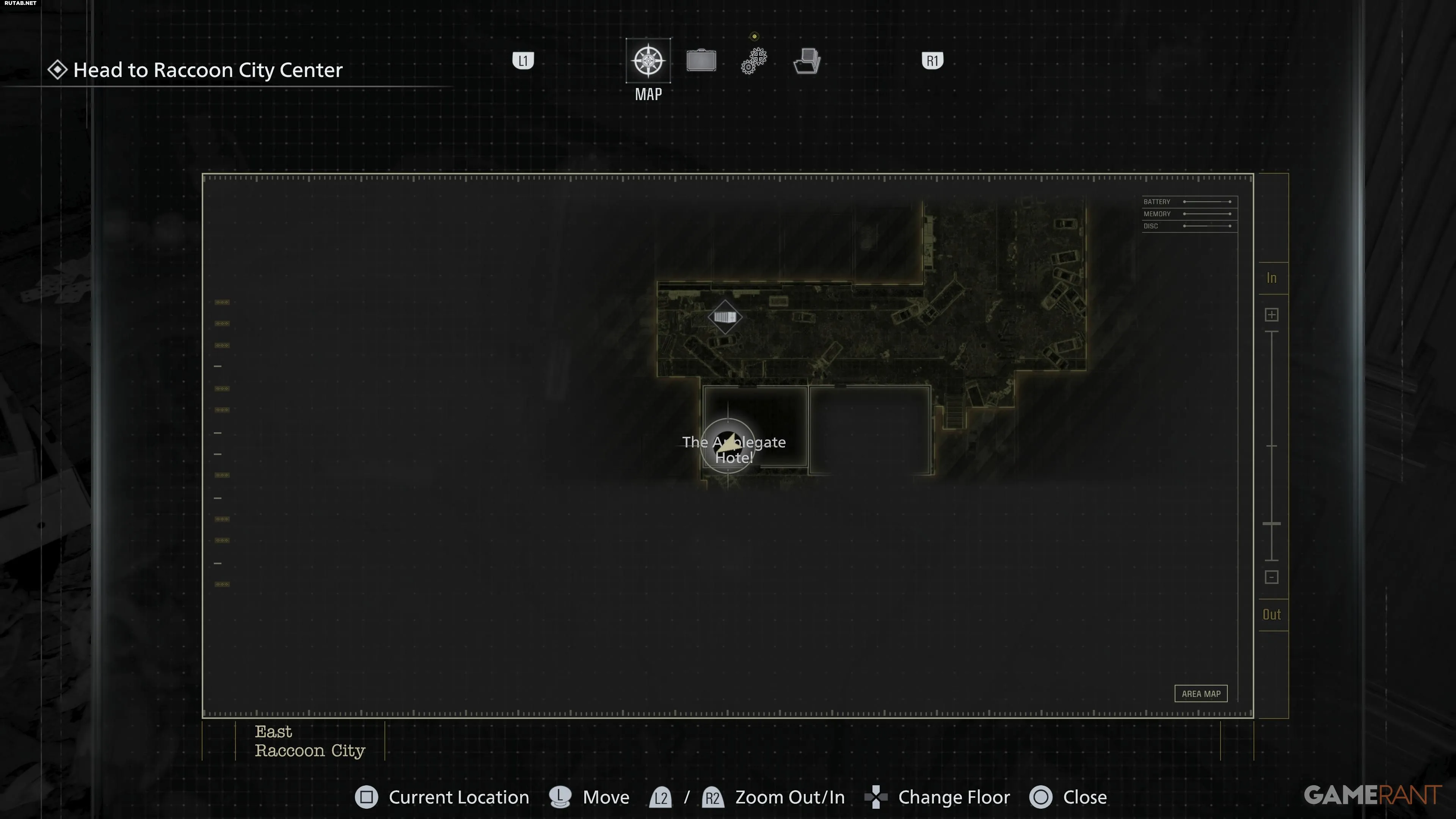 Первое письмо находится почти сразу после начала главы Леона. После вступительного ролика идите прямо и поверните направо к входу в отель «Эпплгейт». Основной путь лежит через вращающуюся дверь, но прежде чем идти туда, осмотрите красный диван справа. Письмо будет лежать на нём.