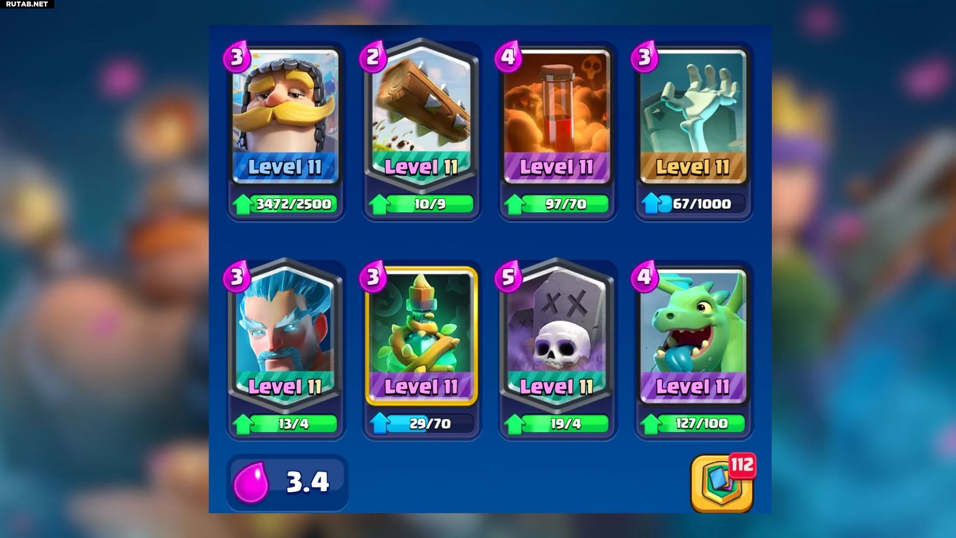 Средняя стоимость этой колоды для режима «Хаос» составляет 3.4 эликсира.