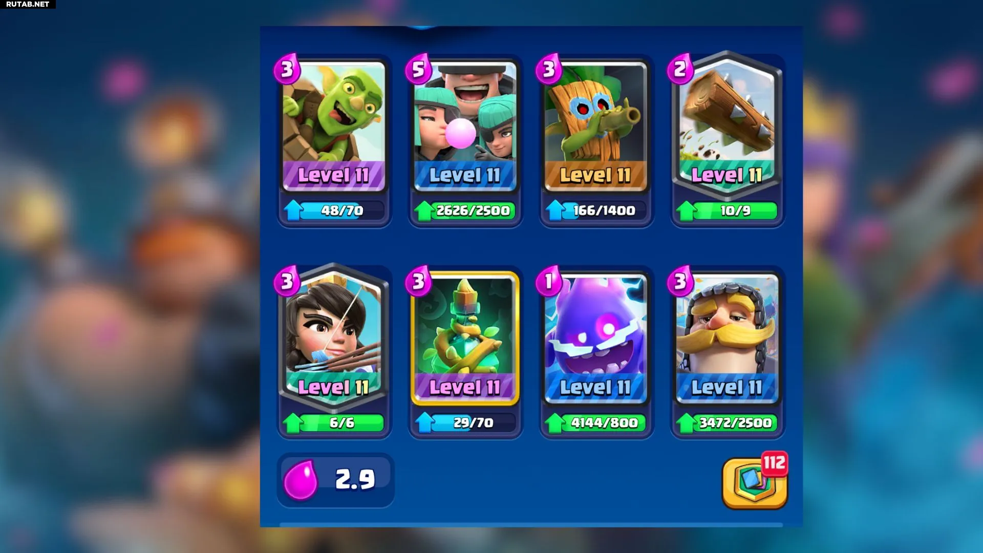 Средняя стоимость этой колоды для режима «Хаос» составляет 2.9 эликсира.