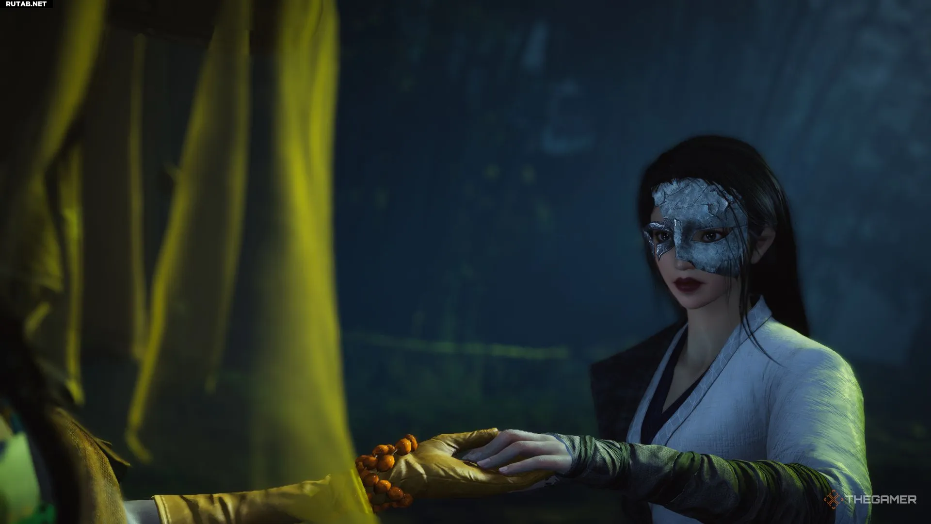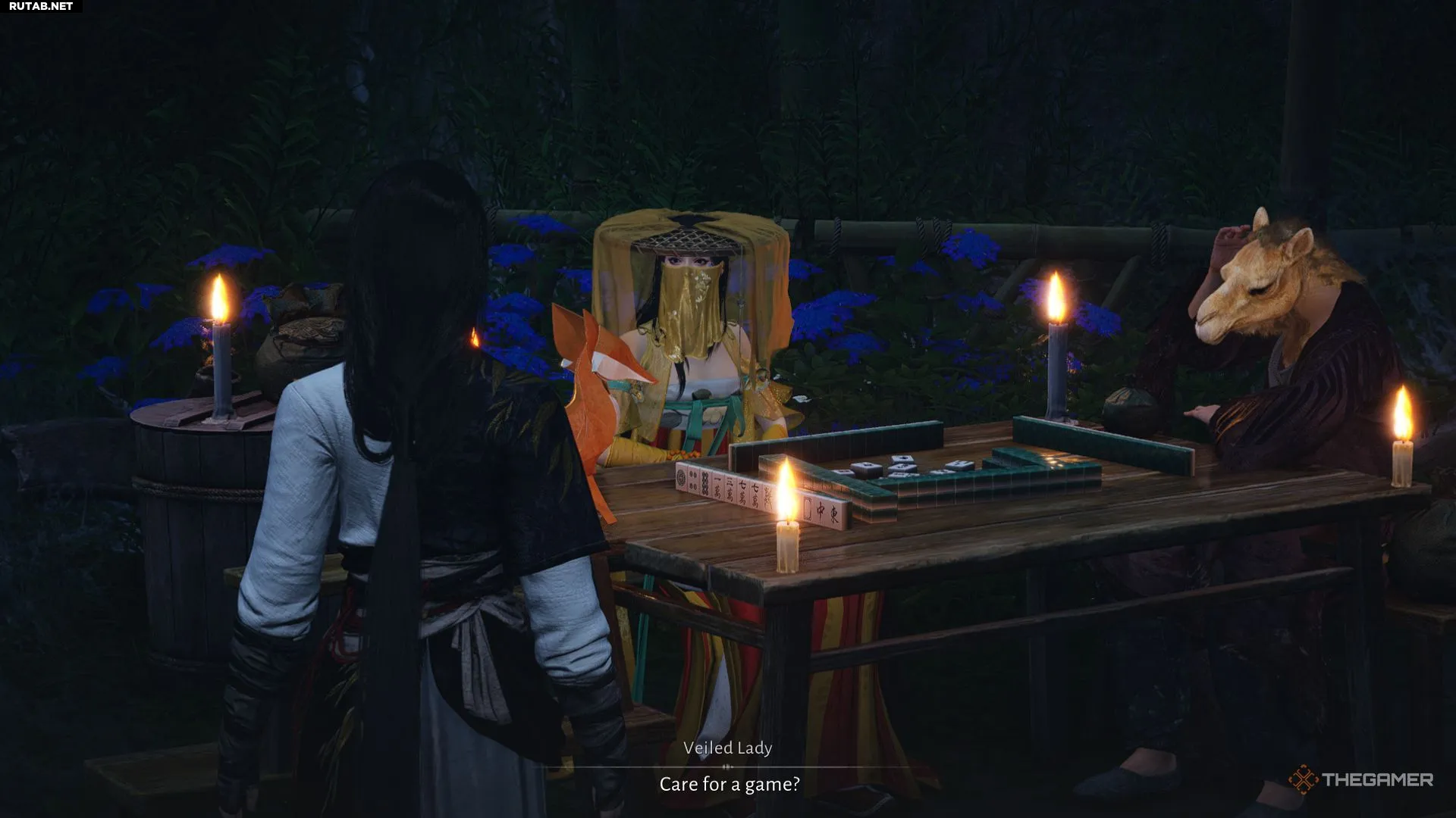 Начнётся странная кат-сцена, а после её завершения поговорите с Завуалированной дамой (Veiled Lady), которая появится за столом, играя в маджонг, в том же сарае.