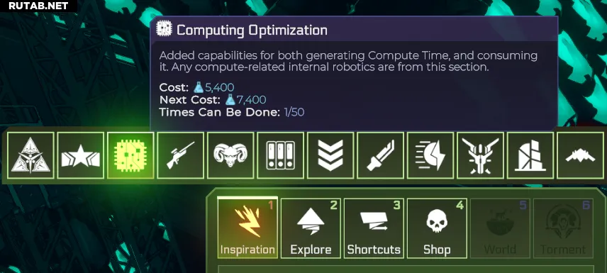 Например, стоимость исследования Стрелкового оружия будет увеличиваться каждый раз, когда вы покупаете его в этом меню, но это никак не повлияет на цену Оптимизации вычислений. Аналогично, другие источники вдохновения для исследования стрелкового оружия, которые можно найти в игре, не отразятся на стоимости его покупки здесь.
