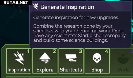 Клик по нему или использование горячей клавиши J откроет вид с новыми опциями. Первая из них — единственная, которая связана с научными исследованиями. Остальные либо связаны с дерзостью, либо с настройкой виртуальных миров позже, во второй или третьей главах.