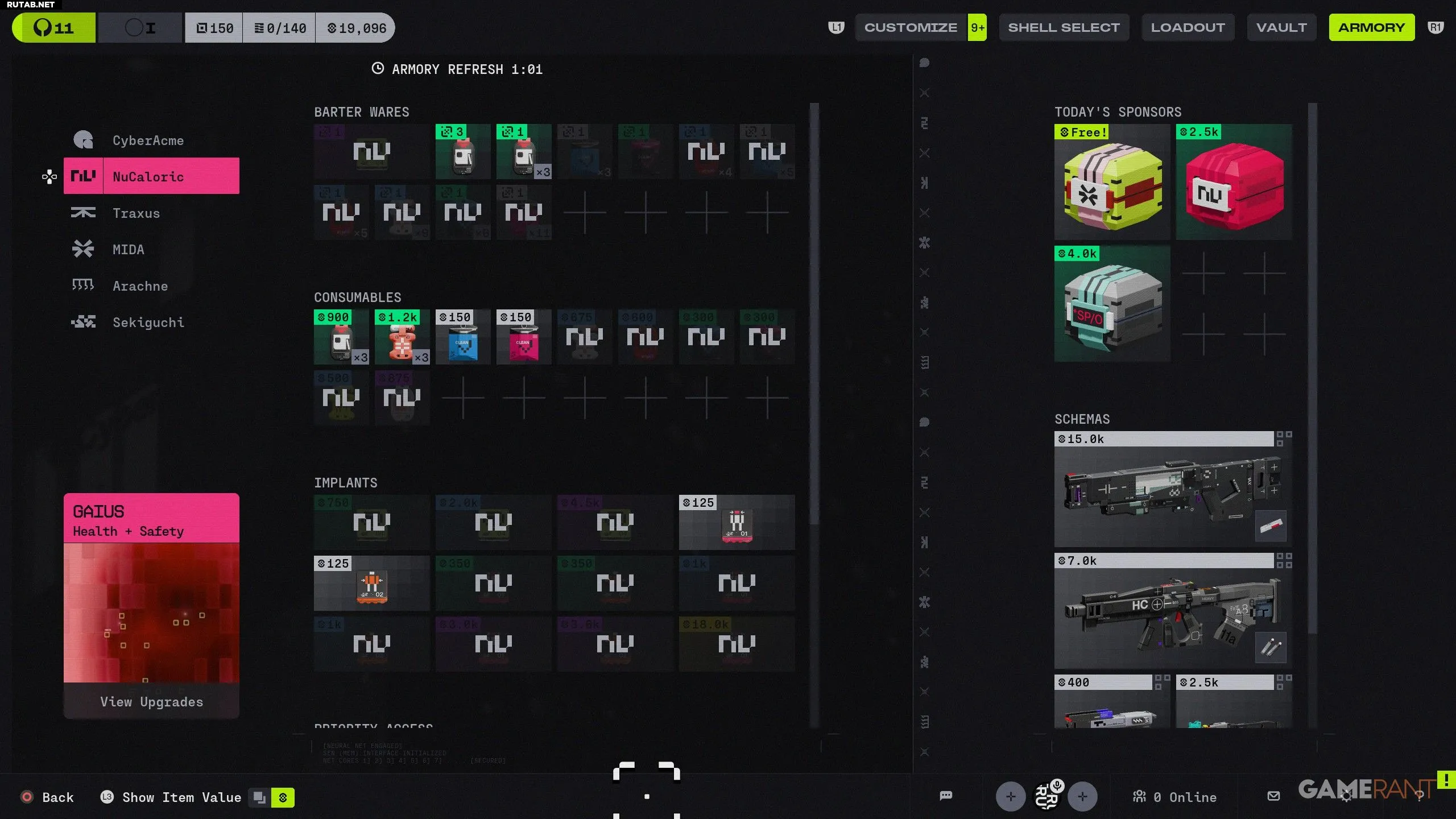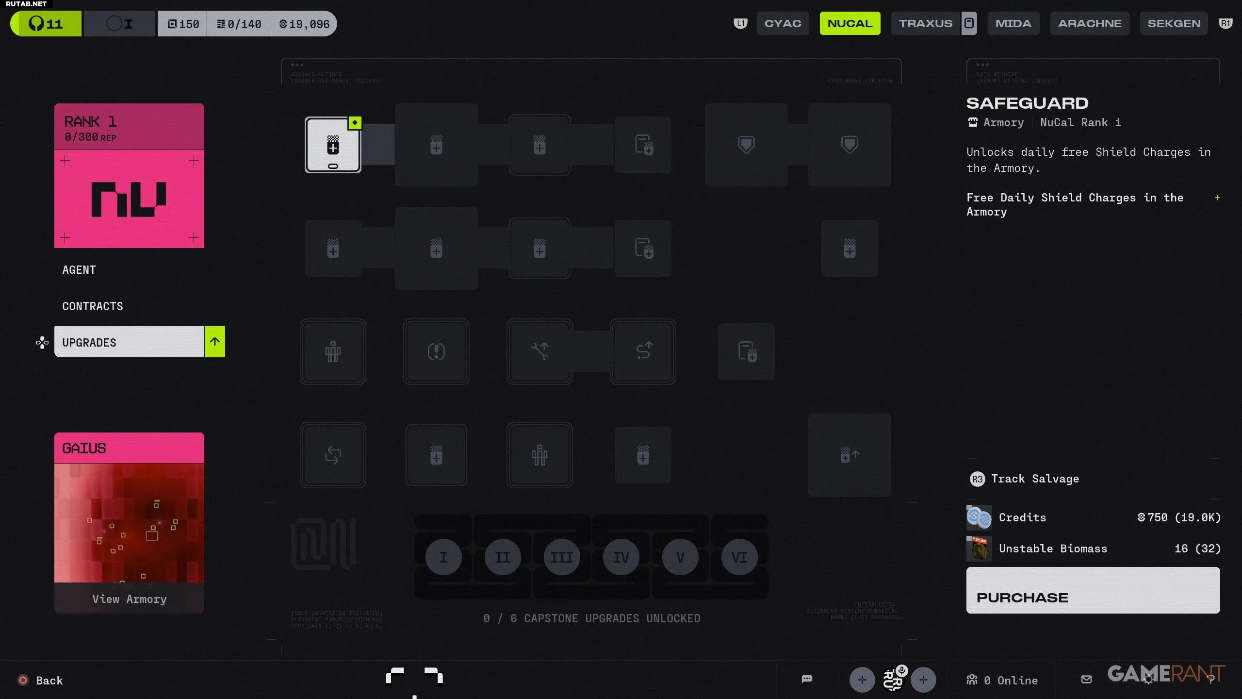 Фракция NuCaloric делает упор на самопомощь, предлагая улучшения, сфокусированные на выживаемости. Игроки могут тратить кредиты на повышение редкости зарядов щита и аптечек, а также на наборы самовоскрешения, которые позволят дольше оставаться в игре.