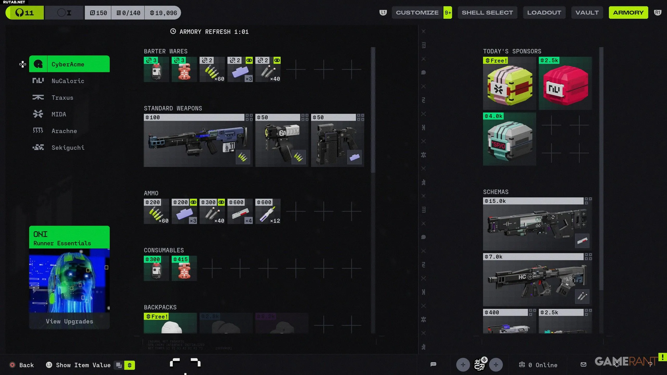 CyberAcme — фракция по умолчанию, которую открывают Бегуны. Она предназначена для новичков и в основном фокусируется на улучшениях, полезных во время забегов, таких как увеличение места в Хранилище, повышение ёмкости тепла, улучшение кошелька для кредитов и покупка рюкзаков.