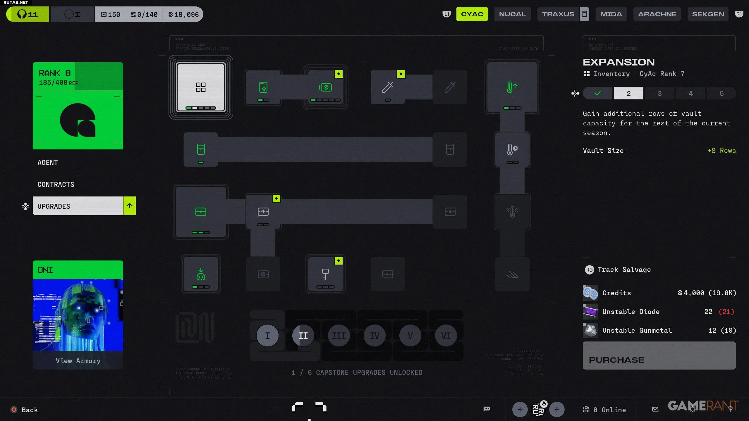 Цель CyberAcme — дать вам старт в путешествии, предоставив необходимые улучшения и приоритетные контракты, которые ведут к другим фракциям.