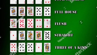 - Фулл-хаус: Пара и тройка карт разного достоинства.