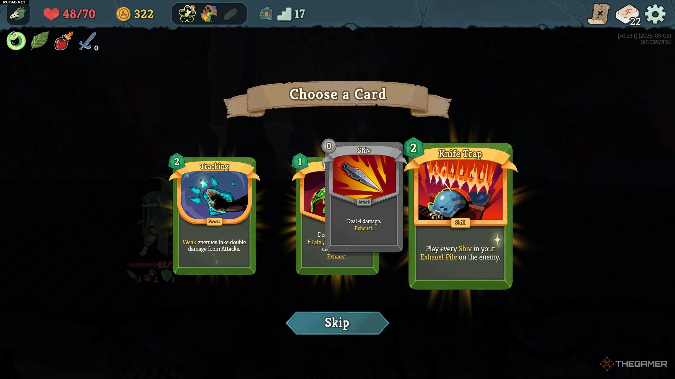 Последний крупный архетип — Кинжалы (Shivs). Это карты с нулевой стоимостью, наносящие 4 урона, но Сжигающиеся (Exhausted) при розыгрыше.