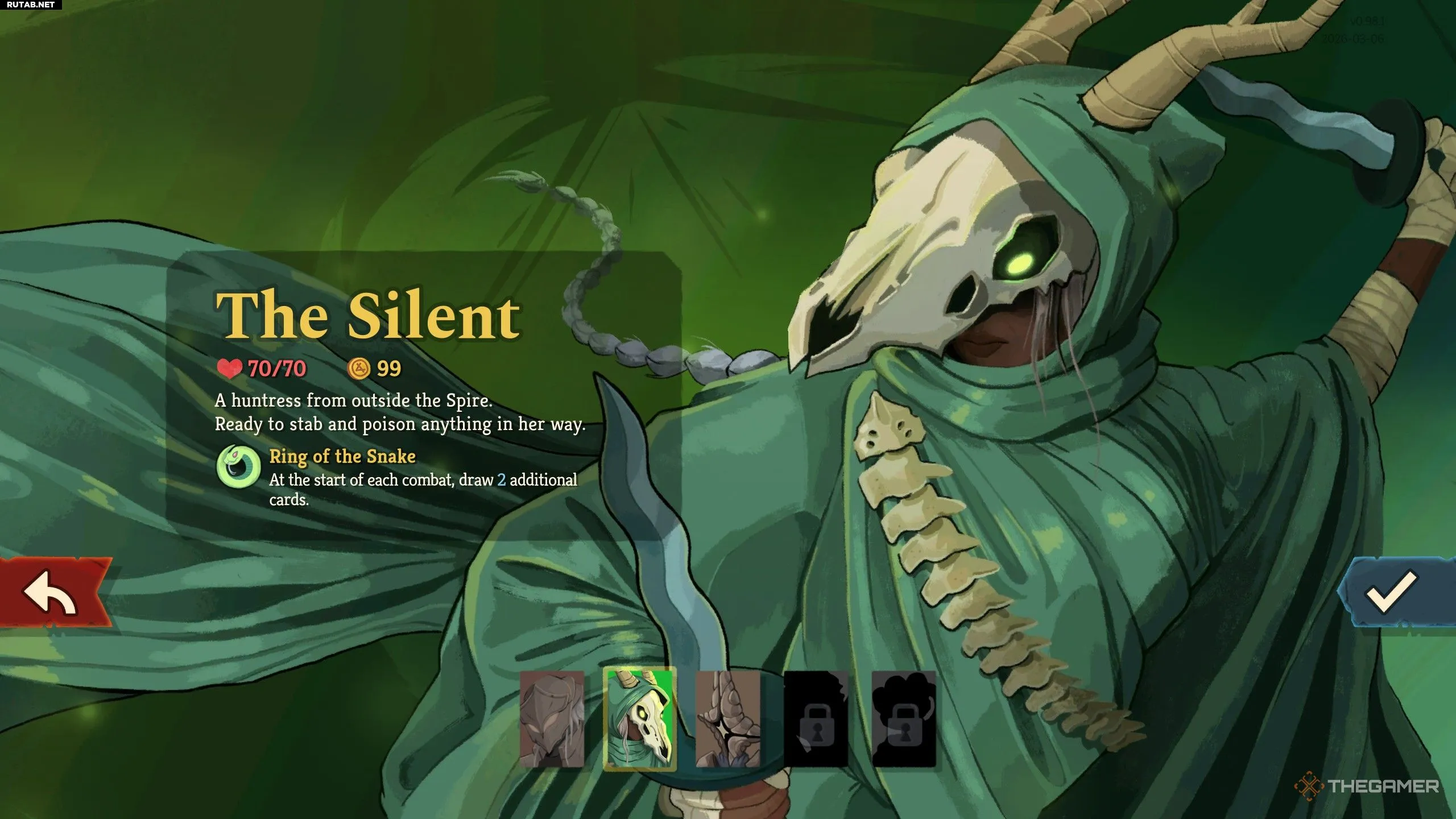 Один из них — Безмолвная (The Silent), моя личная любимица. Это охотница, чья игра основана на скорости, розыгрыше множества карт за ход и отравлении врагов. Играть за неё может быть непросто, поэтому вот руководство для новичков по Безмолвной, если вы не знакомы с этой серией.