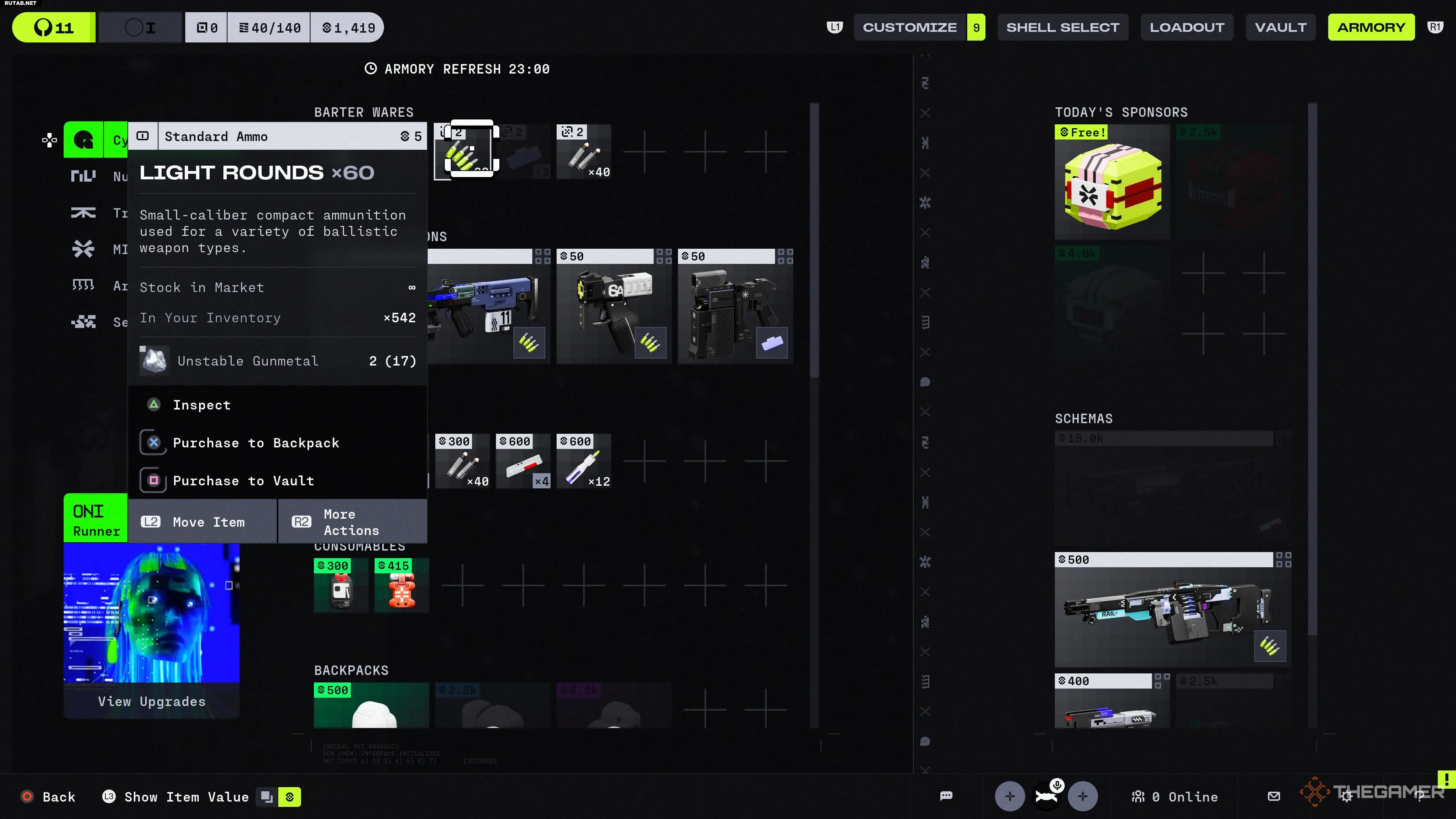Для второго варианта вы можете сэкономить Кредиты на другие покупки и вместо этого использовать Утиль, найденный во время забега, например, Нестабильную оружейную сталь. Перейдите на верхнюю страницу Оружейной и посмотрите доступные варианты в разделе «Товары для бартера».