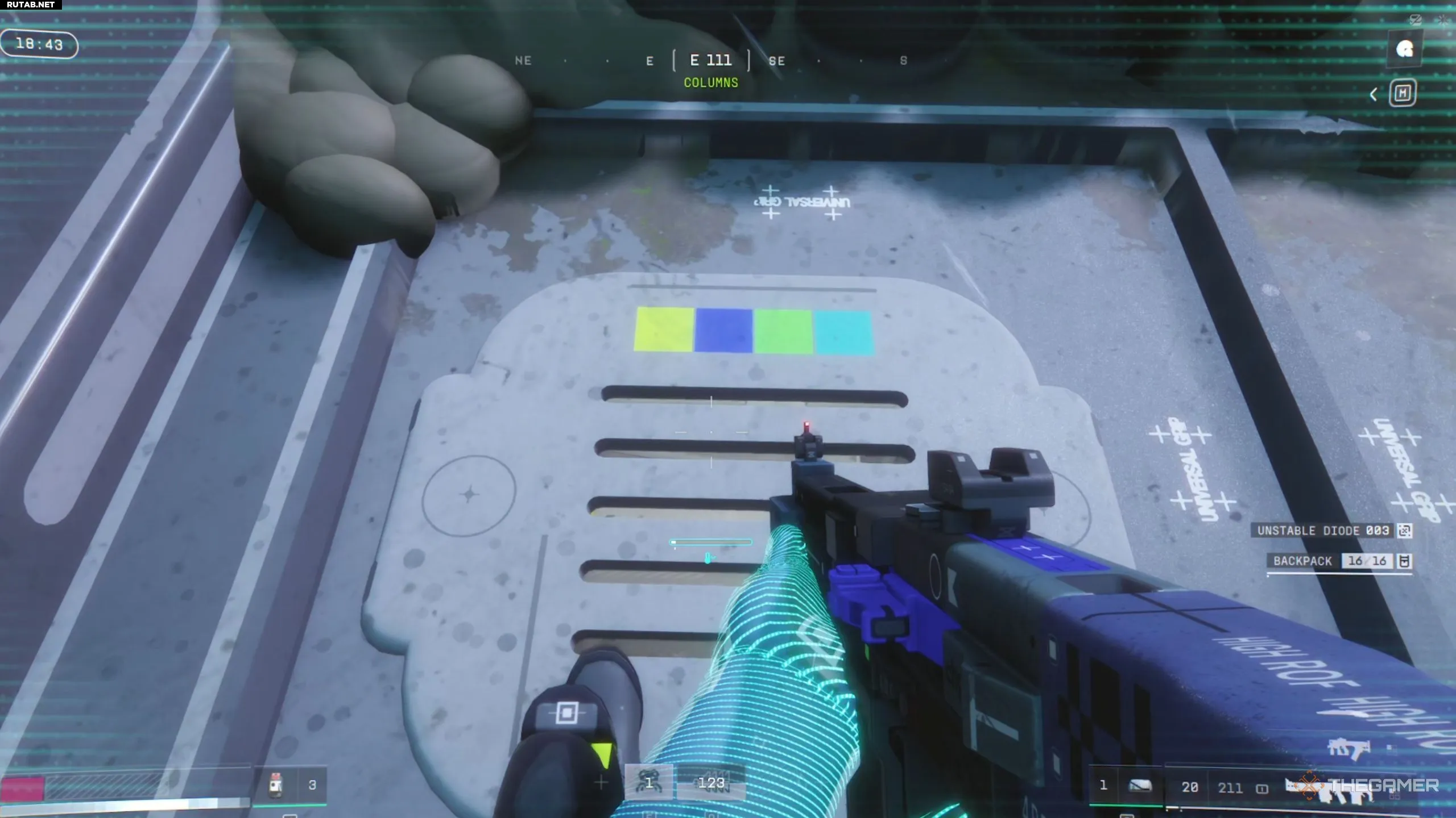 Чтобы выполнить оставшуюся часть квеста, нужно найти способ проникнуть внутрь. Пройдите к задней стороне здания, которая ближе к обрыву, и вы увидите лестницу, ведущую на крышу. Поднимитесь по ней, и слева на полу вы найдете вентиляционную решетку, которую можно разбить. Это позволит вам спуститься в здание, активировать замки сканером руки и попасть внутрь.