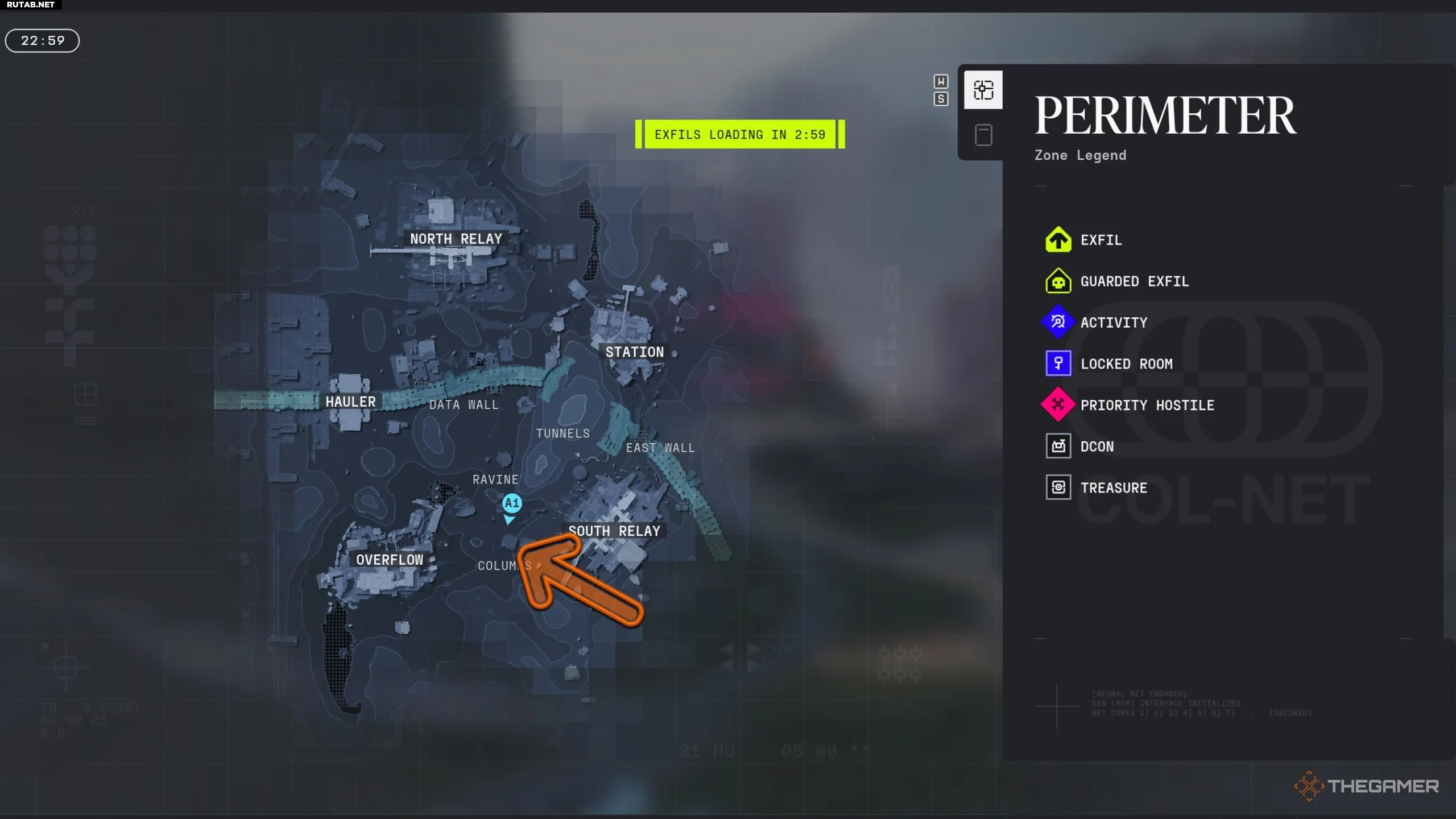 Взяв контракт «Знакомство с Нукалориком», вы получите общую подсказку, что зараженное здание находится в районе «Колонны» на карте «Периметр». Загрузившись на этой карте, откройте миникарту и найдите район «Колонны» на южной стороне. Вы можете поставить на него метку, чтобы на экране появился маршрут.