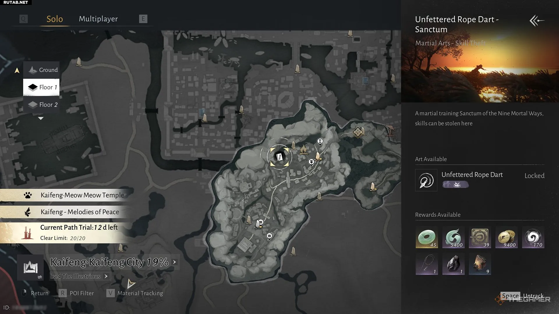 Мастер, владеющий Необузданным веревочным дротиком, находится в Святилище Девяти Смертных Путей на Рынке Призрачного Огня под городом Кайфэн. Попасть сюда можно либо во время квеста «Проблемы с наградой», либо вступив в секту Девяти Смертных Путей.