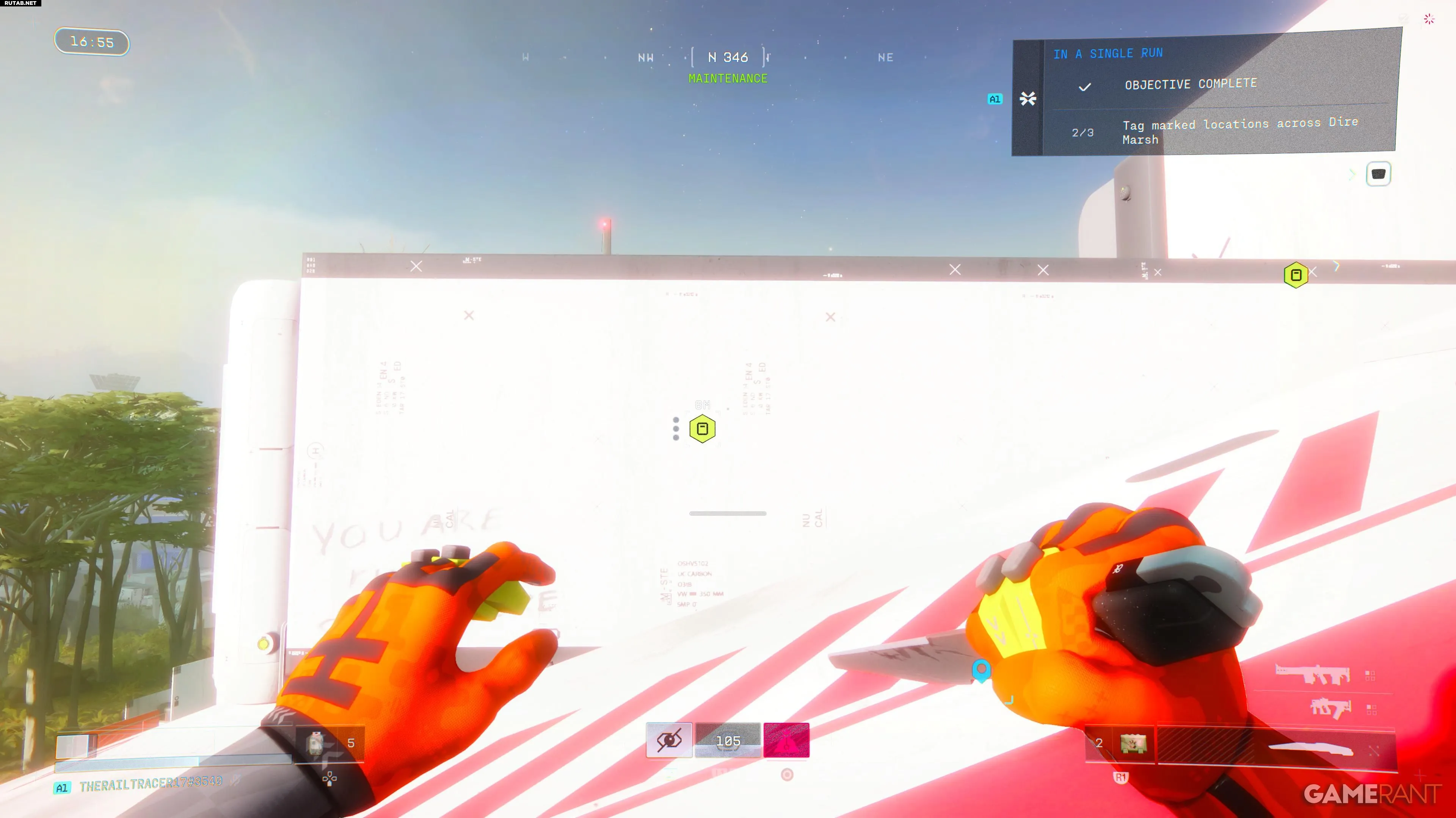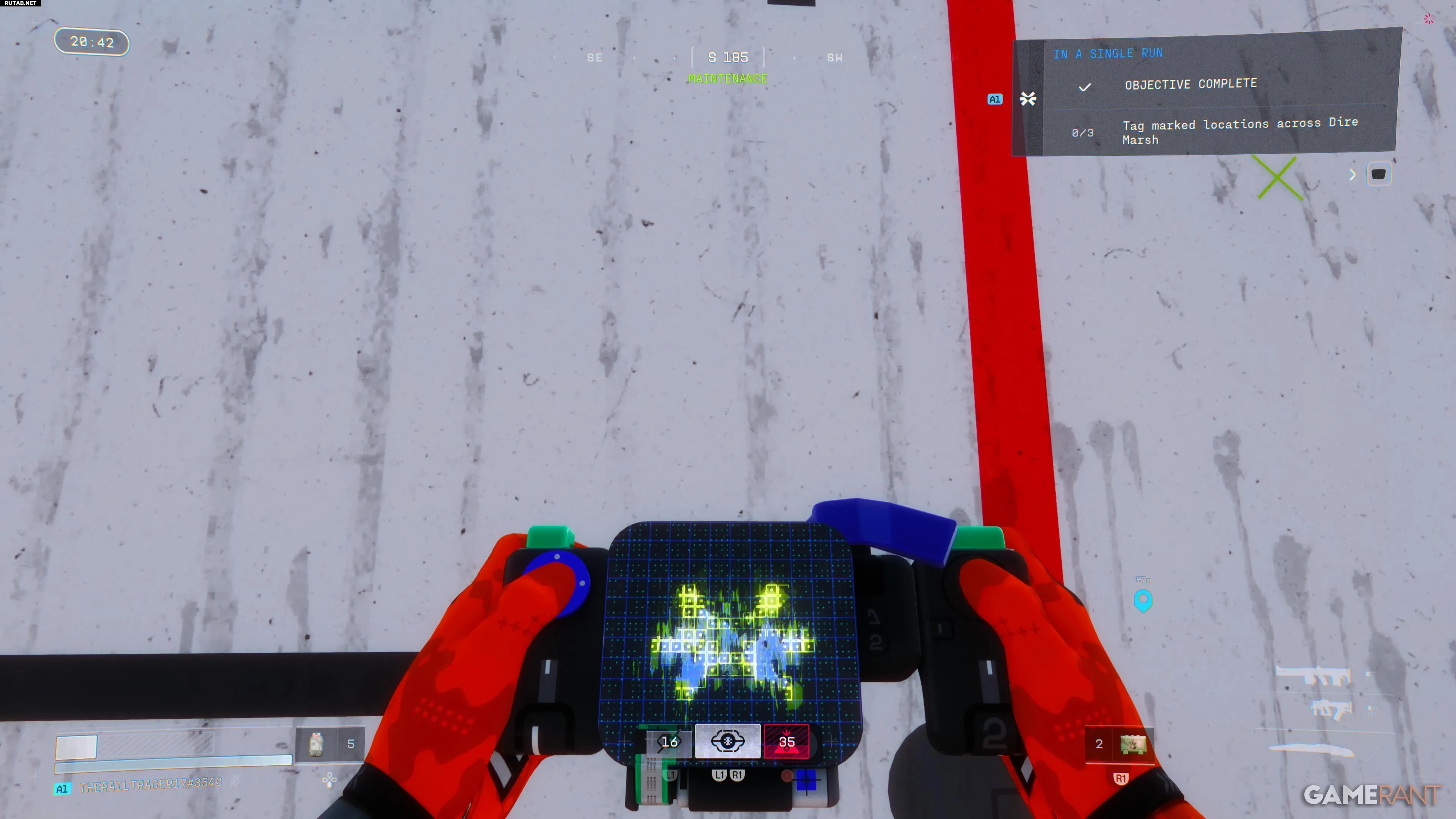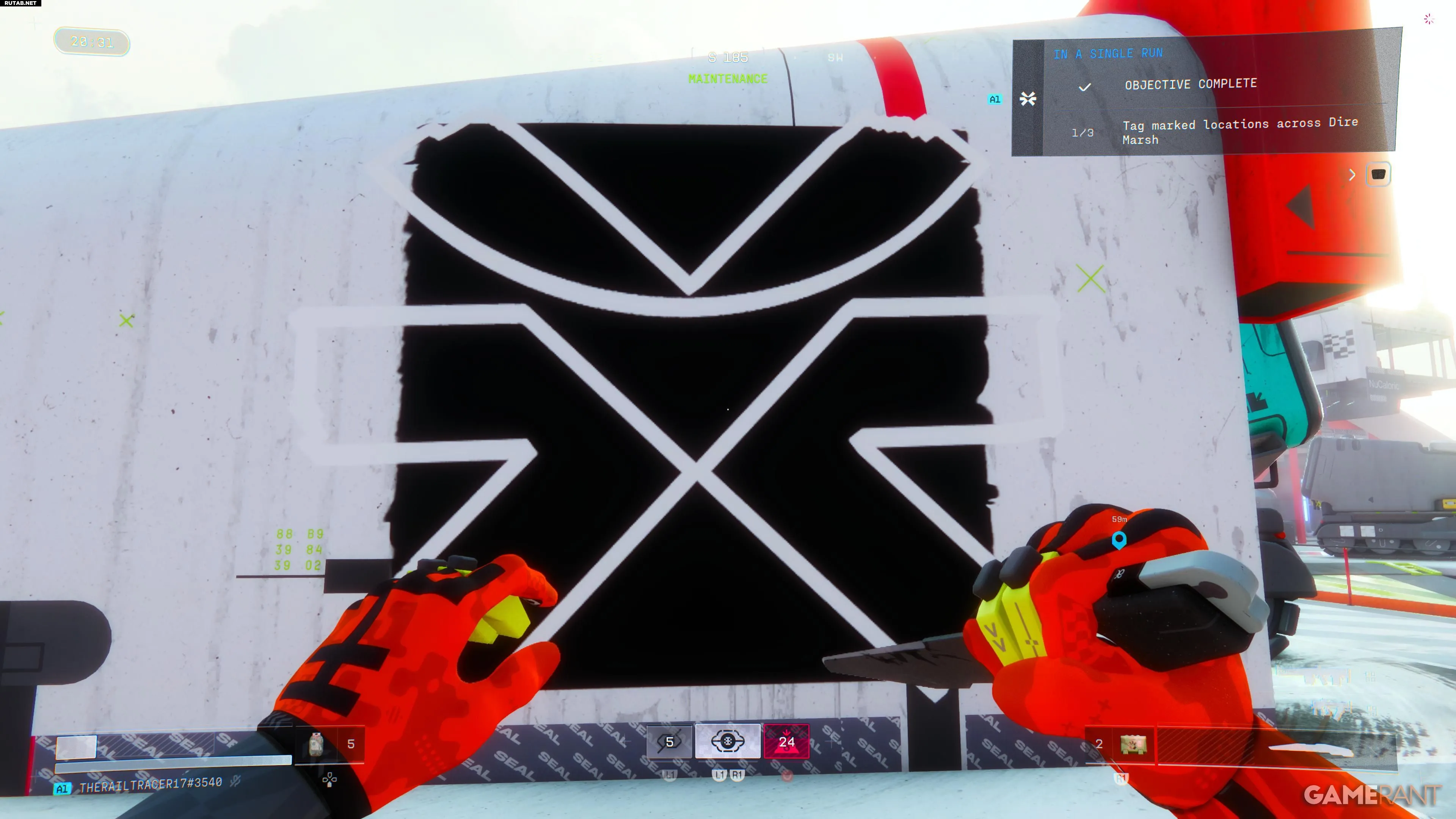 Вторая задача обычно сложнее. Точки для отметки не показаны на карте, а описание задания не дает подсказок. Основные зоны, где они находятся: «Комплекс», «Техобслуживание» и «Связь с ИИ». «Техобслуживание» ближе всего к Перекрестку, поэтому туда обычно безопаснее идти следом, чтобы избежать столкновений с другими бегунами.