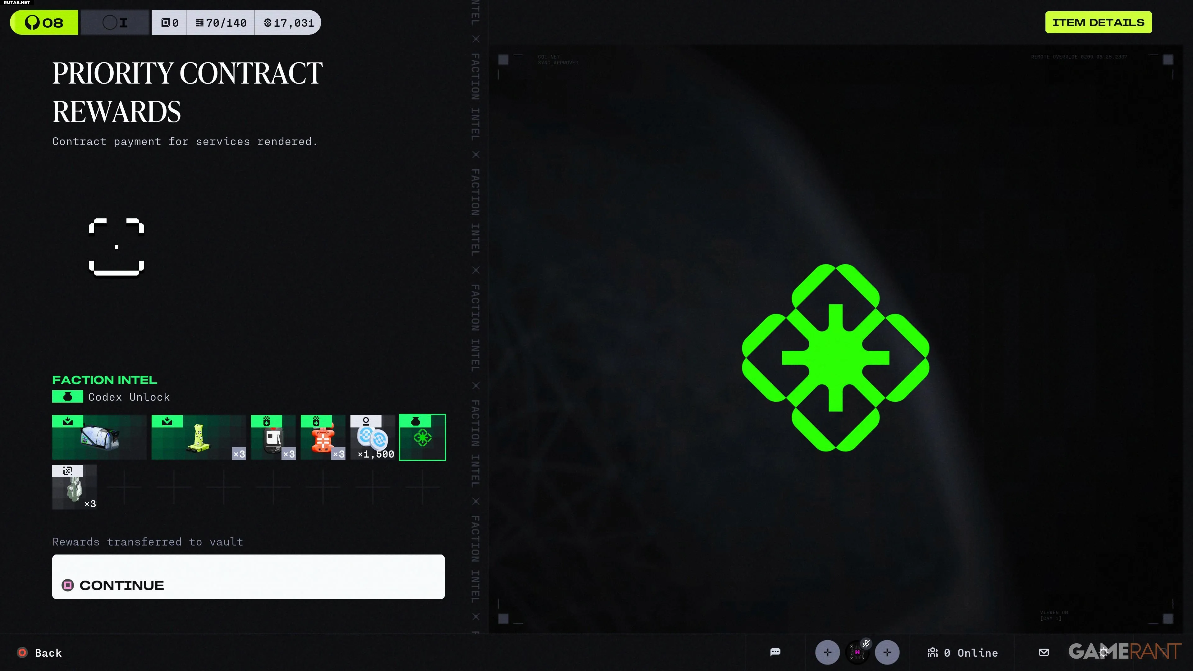 Отметив все необходимые точки, вы завершите контракт. После возвращения в «Гантри» через главное меню вы получите следующие награды: