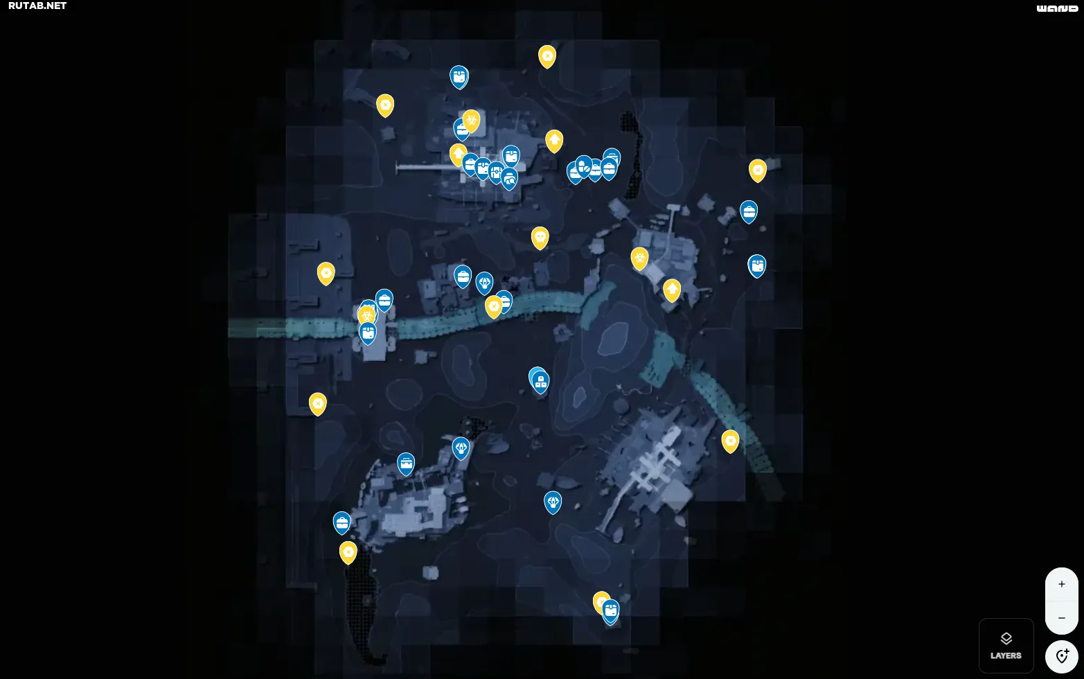 Карта отслеживает контейнеры (например, Фолио и Сбросы припасов), позиции врагов (включая турели и юнитов UESC) и точки эвакуации на обеих локациях. Используйте фильтры, чтобы отобразить только нужную информацию.