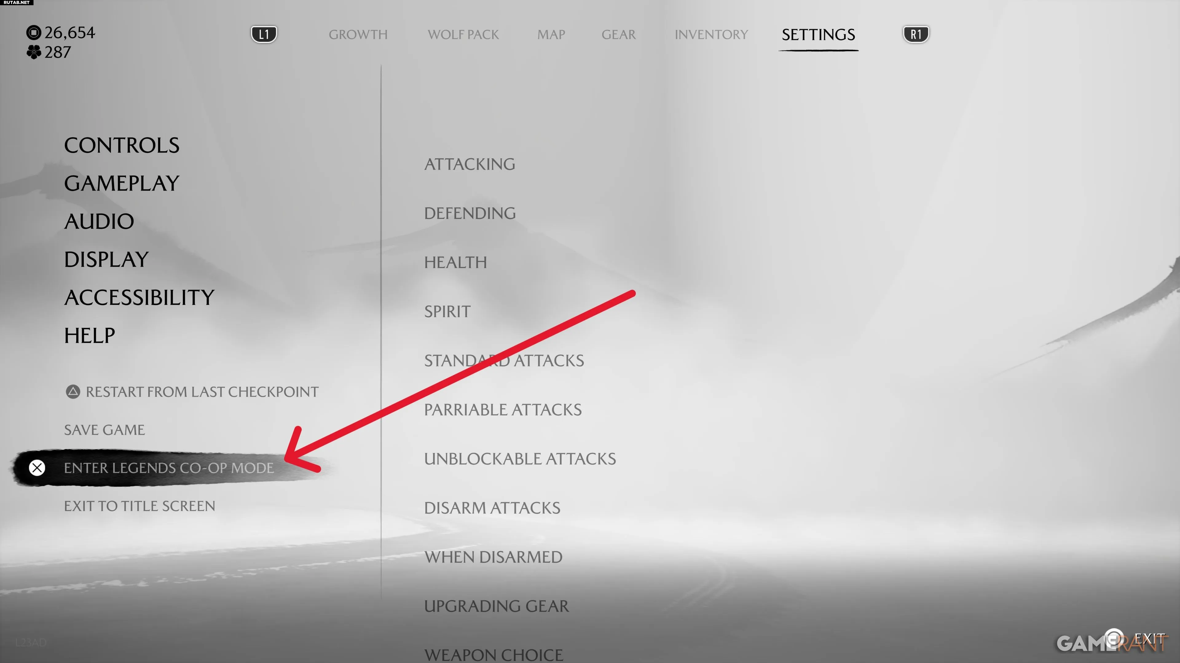 - В меню настроек прокрутите список вниз и найдите опцию «Войти в кооперативный режим Legends». Она расположена между «Сохранить игру» и «Выйти в главное меню».