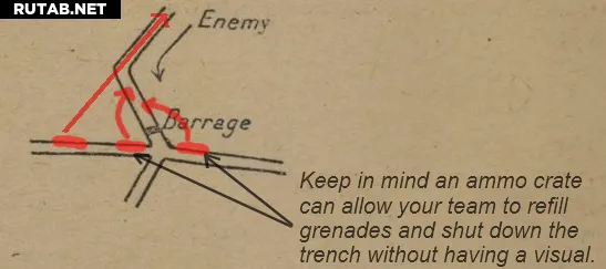 Старайтесь обеспечить своей команде позиции, которые позволяют простреливать другие окопы, которые может использовать противник.