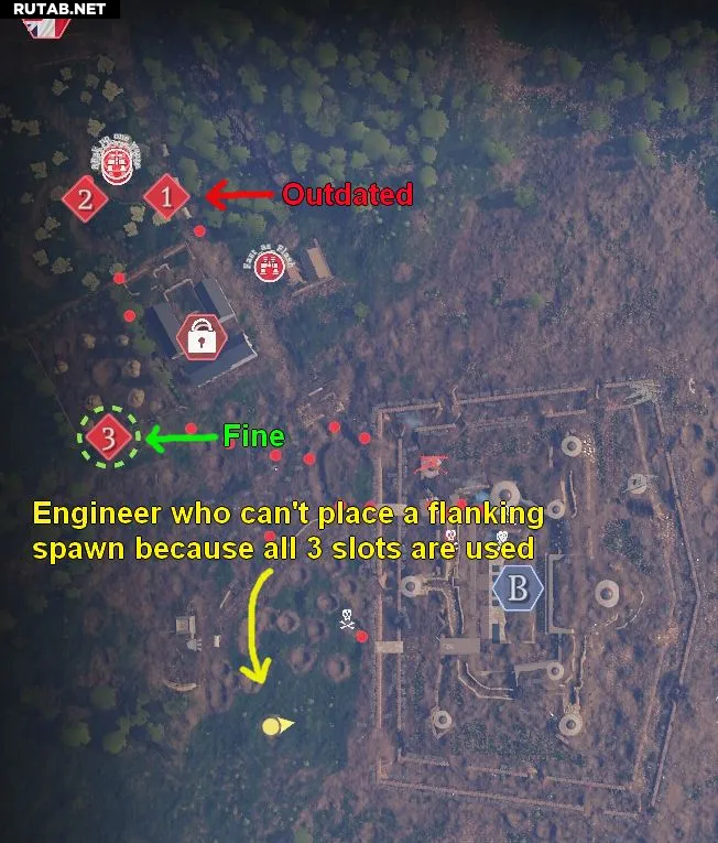 Точка, которая только что пала, наиболее уязвима. Часто вашей команде нужна лишь передовая точка возрождения поблизости в безопасном месте, чтобы отбить её обратно.