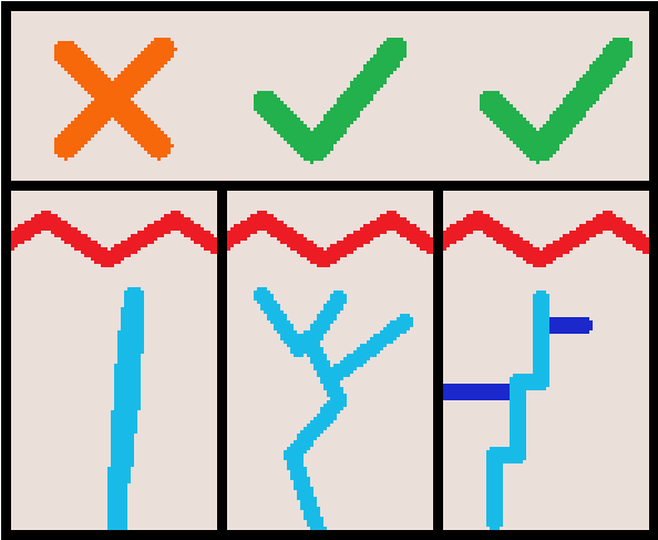 - В центре и справа: два правильных способа. Правый вариант имеет ответвления на флангах, позволяющие союзникам вести огонь по врагу.