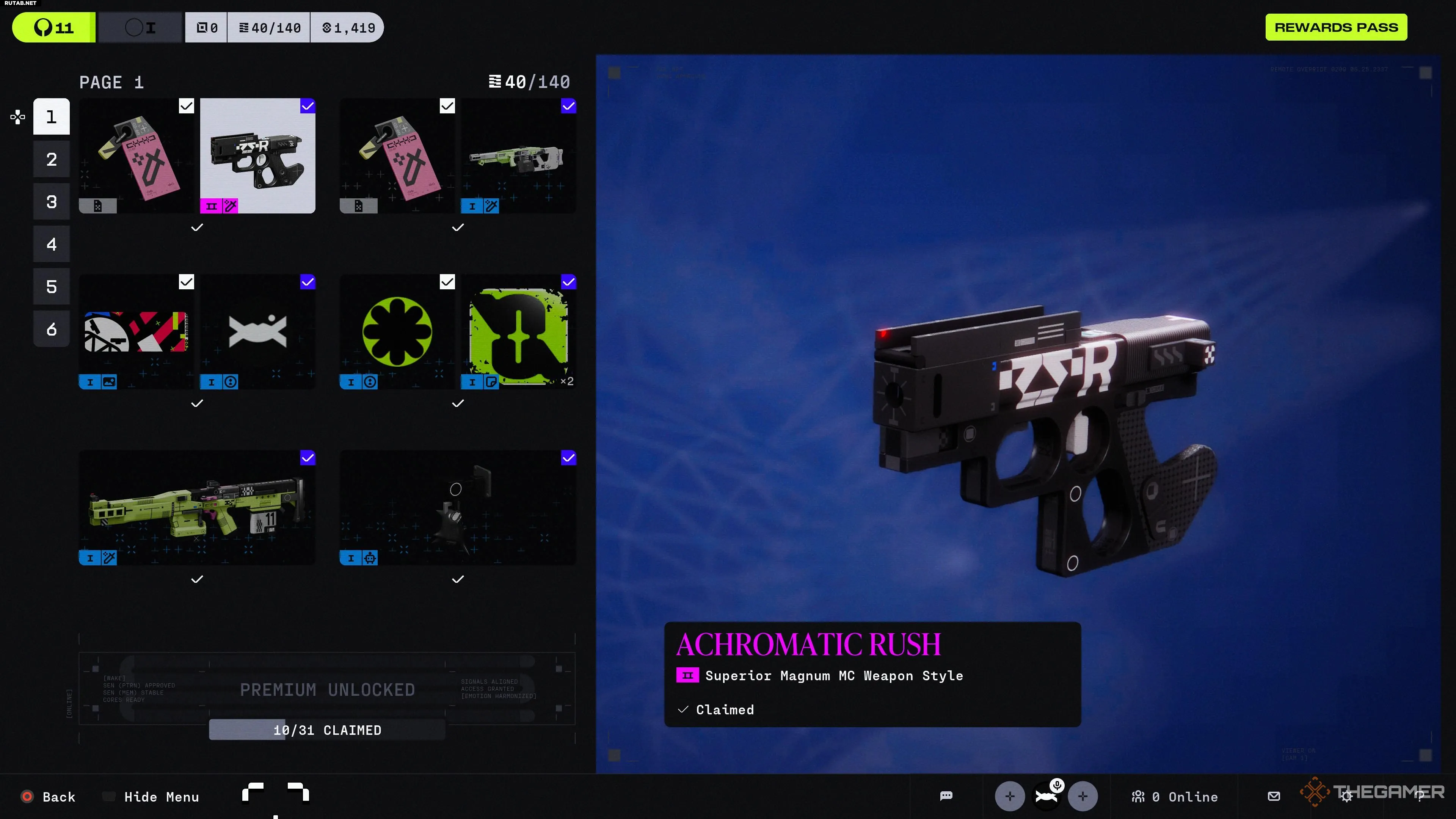 Хорошая новость в том, что достаточно купить уровень один раз, чтобы получить оба предмета. Например, если на первом уровне бесплатной наградой является схема Magnum MC, а премиумной — расцветка Achromatic Rush, то для получения обоих предметов потребуется потратить всего 30 единиц Silk.