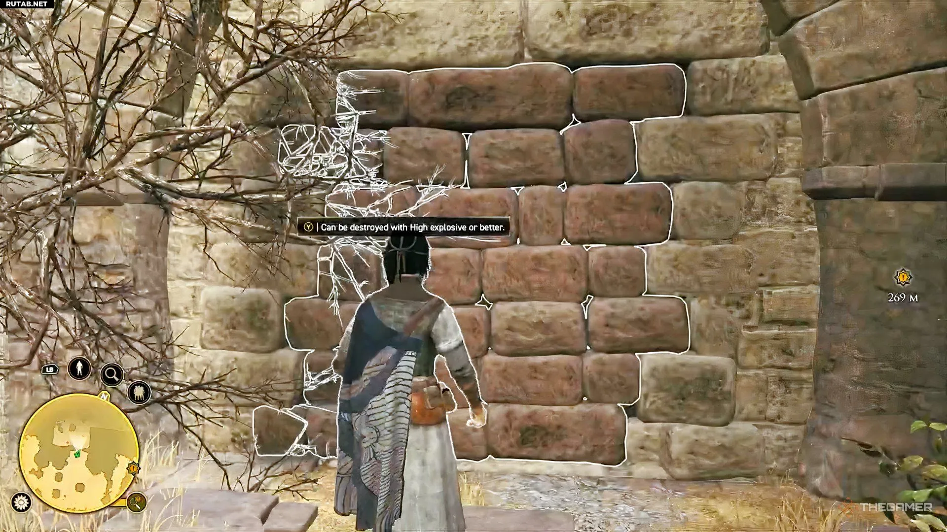 Выйдя из комнаты со вторым рычагом, ты увидишь слева импровизированную стену. Заложи сильную взрывчатку и взорви её, чтобы расчистить путь. Обыщи сундук в этой комнате, а затем отправляйся уничтожать следующую группу маджид. Взберись по стенам впереди, а затем спрыгни вниз — ты окажешься там, где ранее находился верстак.