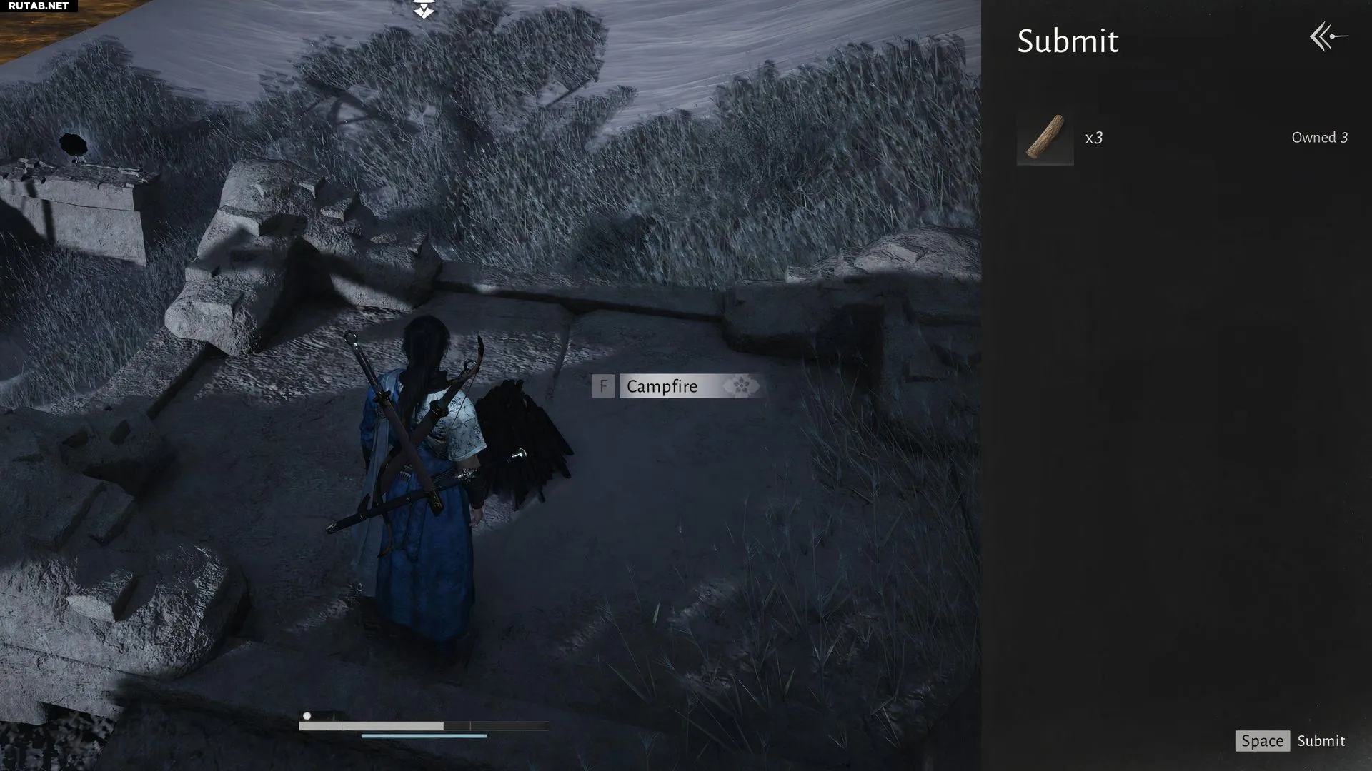 Собрав ветки, вернитесь к костру монаха. Прежде чем положить их, вы подслушаете короткий разговор между монахом и другим путником, которому он помог в дороге. После диалога положите ветки у костра и снова поговорите с монахом.