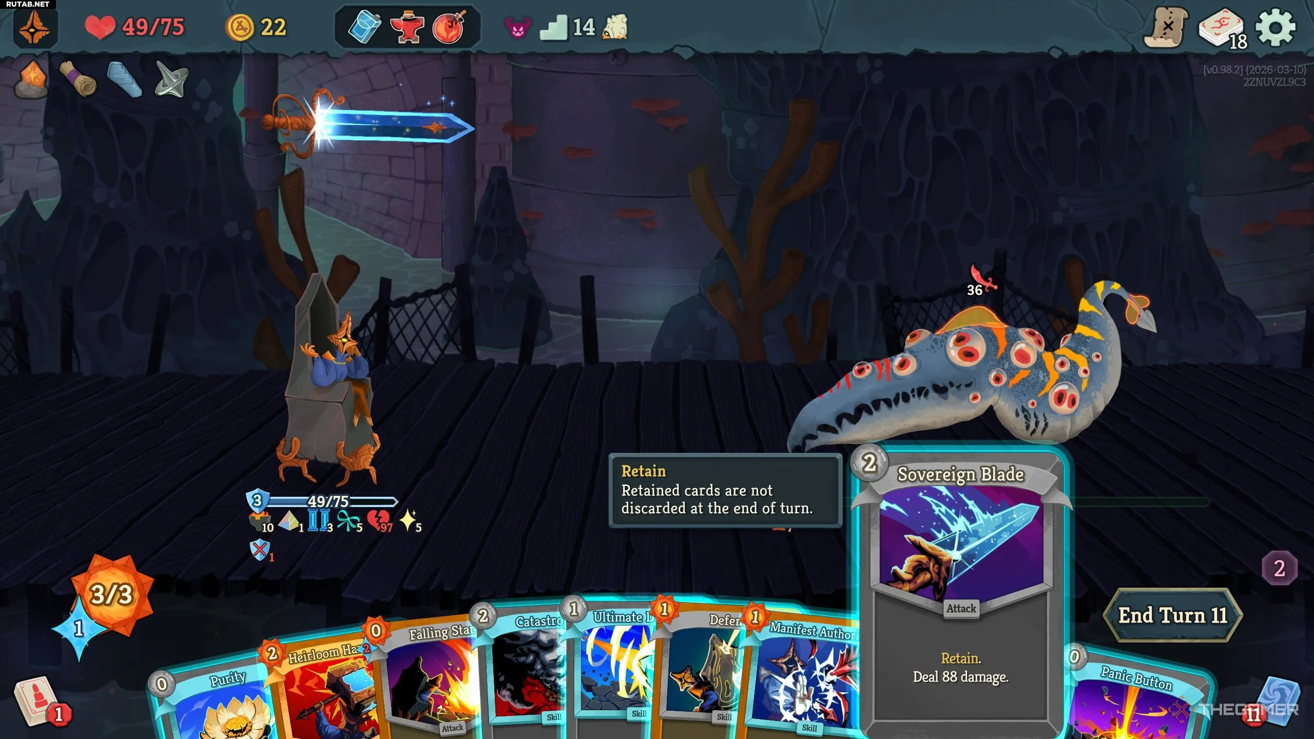 Эта карта атаки имеет свойство Удержание и будет увеличивать свою силу с каждой активацией Ковки, позволяя наносить десятки, если не сотни, урона одним ударом. Однако, если вы не скопируете сам клинок с помощью чего-то вроде «Наследного Молота», у вас может быть только один «Клинок Суверена» в колоде за раз.