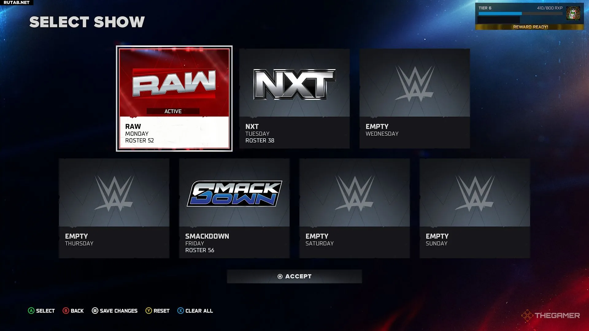Первое, что предлагает сделать мастер — выбрать ваши еженедельные шоу. Изначально доступны варианты: Raw, NXT, SmackDown, WCW Nitro и ECW. Вы также можете добавить собственные шоу.