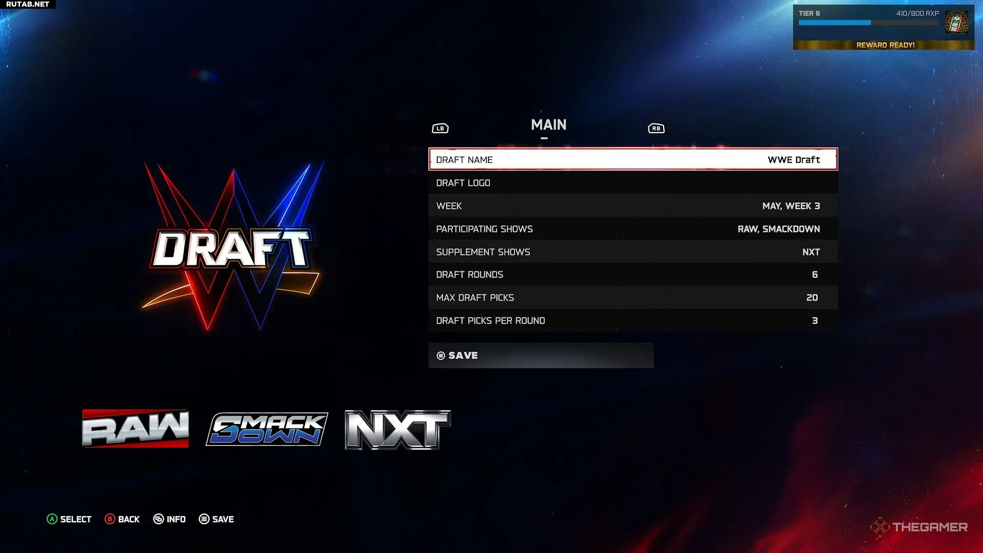 - Предварительный резерв — если включить эту опцию, оба генеральных менеджера могут выбрать суперзвёзд из своих ростеров, чтобы другой менеджер не мог их забрать.