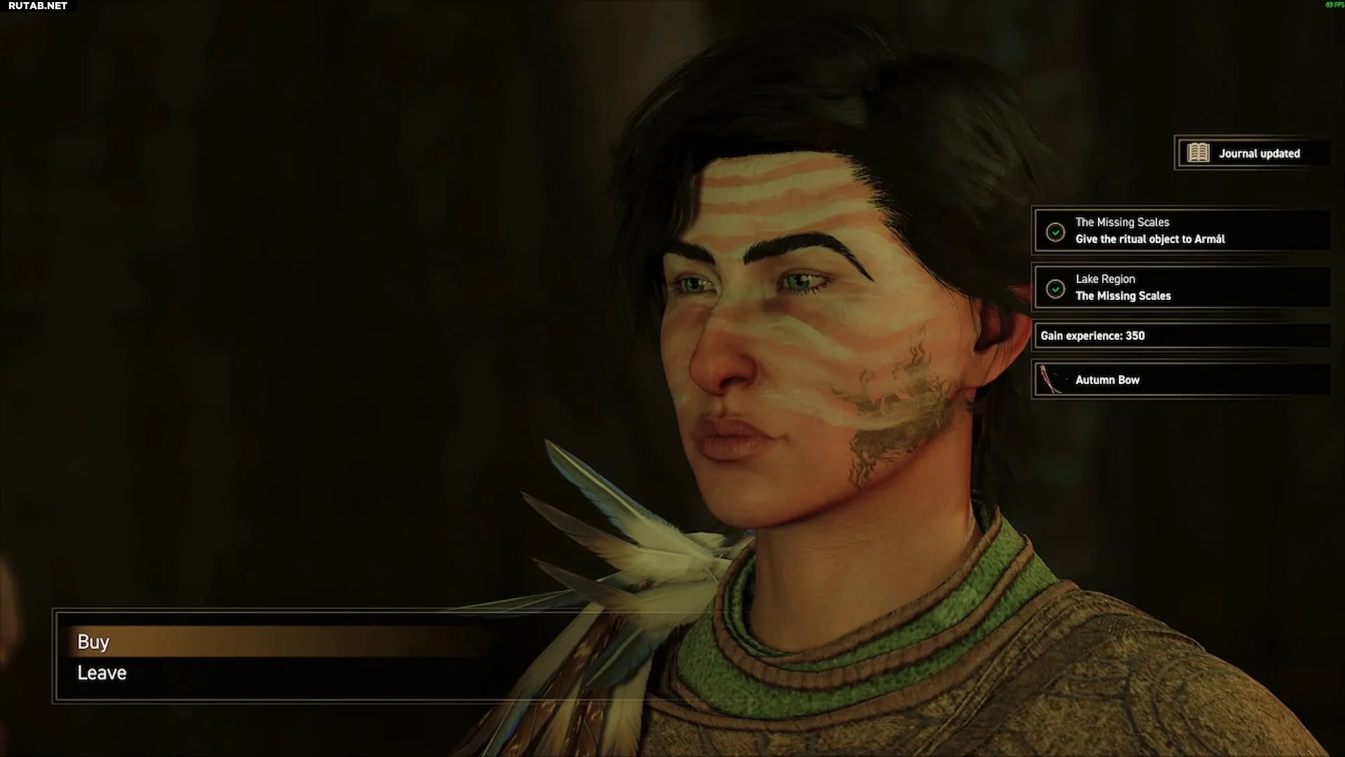 Отнесите ритуальный предмет Армалу в Доме для посетителей. В награду он даст вам Осенний лук и вы получите 350 очков опыта. Задание «Пропавшие чешуйки» будет отмечено в журнале как выполненное.